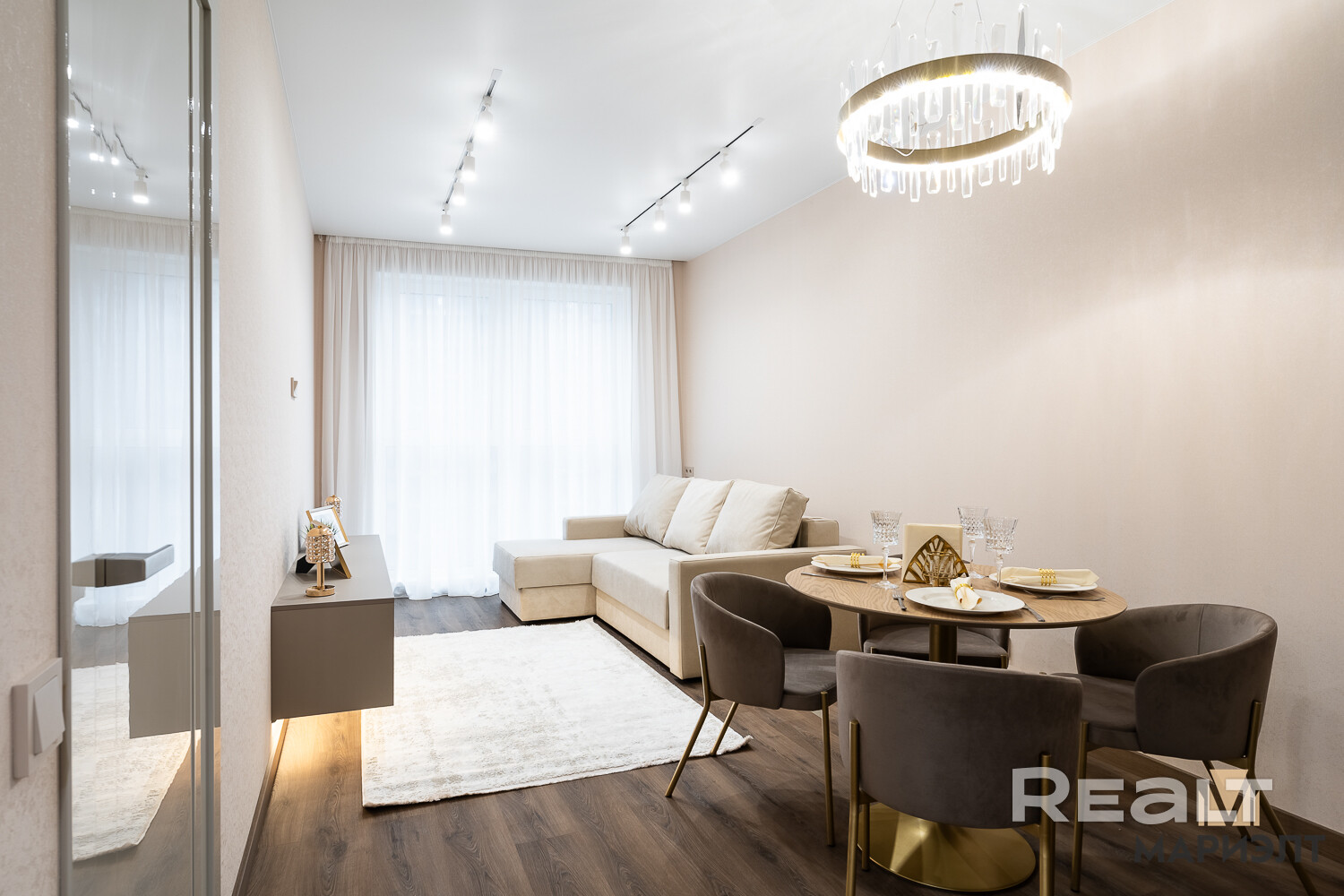 - Просторная, продуманная планировка формата «евро2» с отдельной кухней, гостиной, спальней и гардеробной.