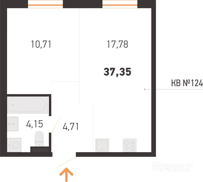 Продается двухкомнатная квартира евроформата общей площадью 37,35 кв.м. в доме 1.1. № 124 (общая площадь указана по СНБ).