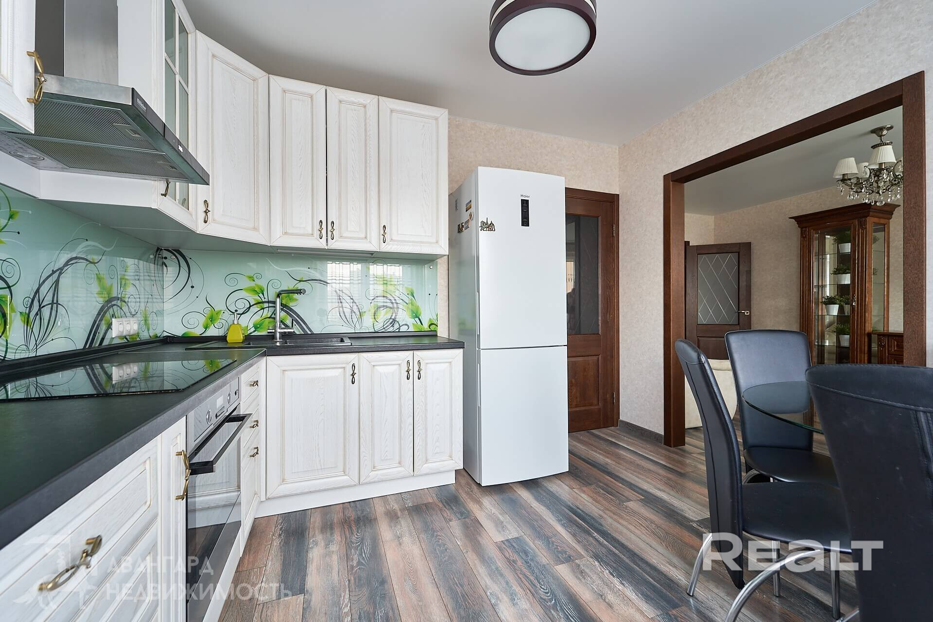 В квартире выполнен стильный ремонт из качественных импортных материалов, мебель и межкомнатные двери – массив, делали для себя и не эксплуатировали; на полу ламинат; лоджия застеклена; встроенные шкафы – останется только перевезти свои вещи.