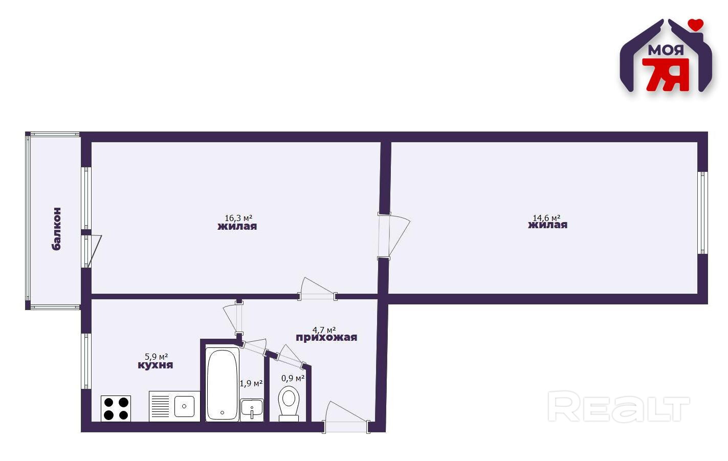 - Просторная кухня: кухня площадью 5,9 м2 — отличное место для кулинарных экспериментов и семейных ужинов.