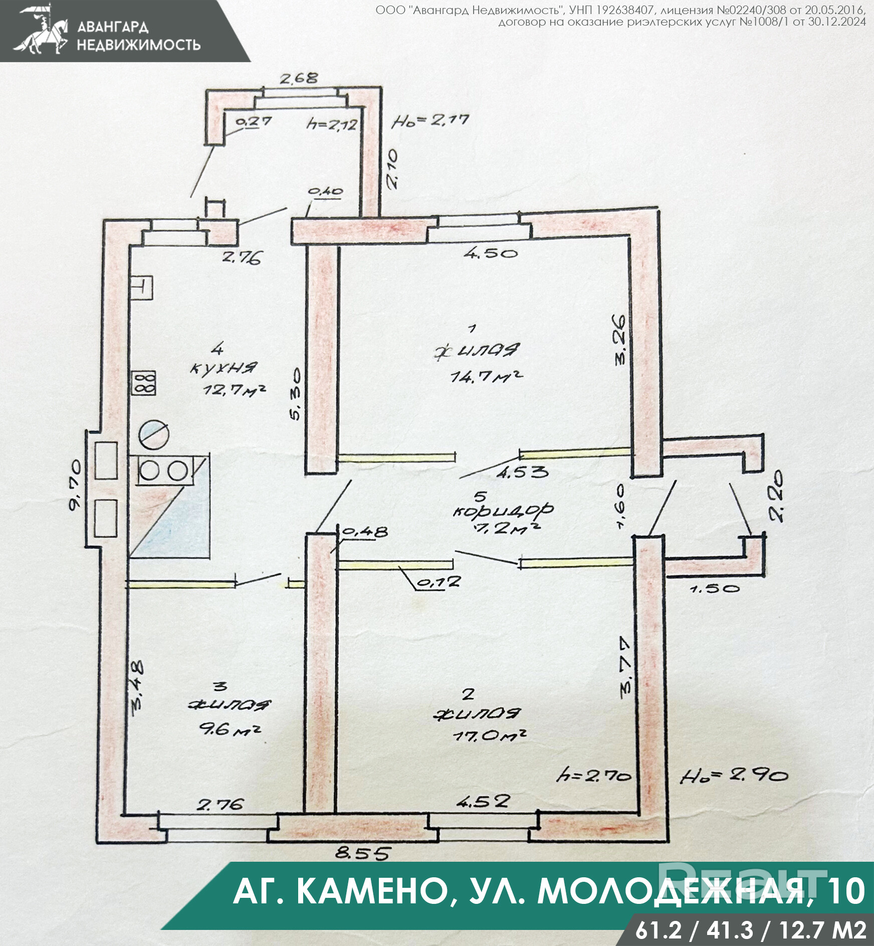 Дом 1982г постройки, площадью 61.2кв.м., состоит из блоков облицованных кирпичом, по периметру установлено ограждение из металлопрофиля и евросетки, окна - стеклопакеты. В доме 3 жилые комнаты: 14,7; 17,0; 9,6кв.м., обустроенная кухня: 12,7кв.м