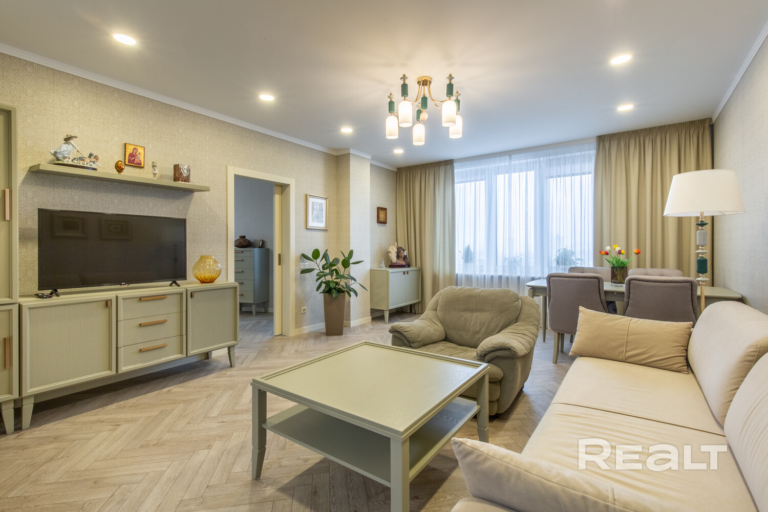 Квартира оборудована всей необходимой мебелью и техникой. Светлые, правильной формы комнаты. Кухня со встроенной мебелью и бытовой техникой: холодильник, варочная поверхность, духовой шкаф, вытяжка, посудомоечная машина. Два сан.узла, установлен водонагреватель. Просторный коридор оборудован вместительной системой хранения.