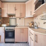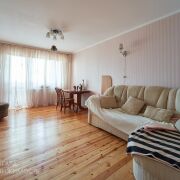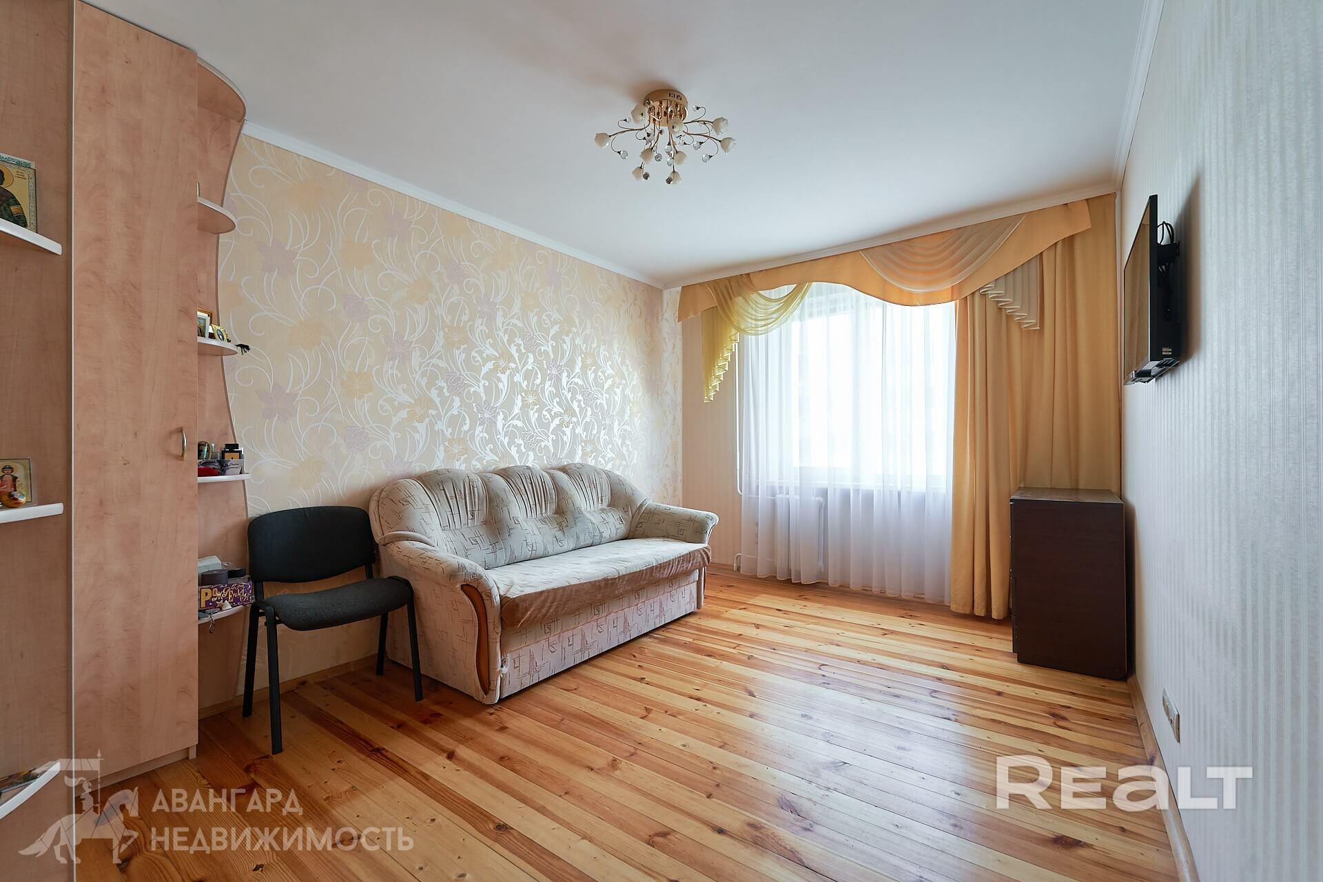 Площадь изолированных жилых комнат 13.8 м2, 17.1 м2 и 17.0 м2 с выходом на застекленную лоджию. Просторная кухня 7.1 м2 укомплектована кухонным гарнитуром, обеденной зоной и бытовой техникой (газовая плита, холодильник, печь СВЧ). Установлены стеклопакеты, деревянный пол, деревянные межкомнатные двери, металлическая входная дверь. В квартире организована система хранения (шкафы-купе). В доме центральное отопление и газоснабжение. В ванной комнате сантехника и установлены счётчики воды. Санузел раздельный.