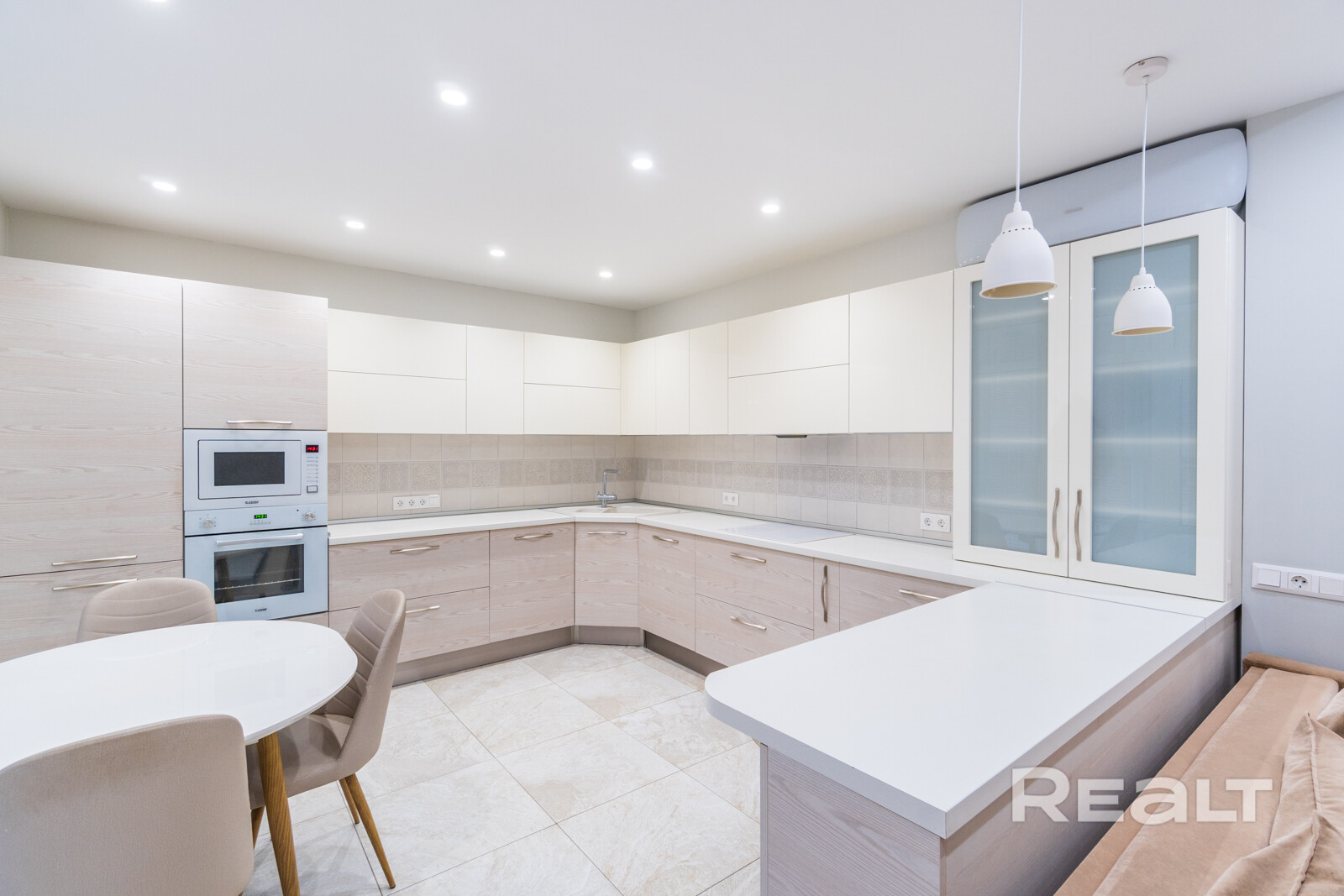 Просторная 3х-комнатная квартира (евро-4х-комнатная) с 3-мя изолированными комнатами с большим холлом и большой кухней-гостиной. Ремонт выполнен в светлых тонах в стиле «Классика». Квартира продается с мебелью и бытовой техникой (видеодомофон, встроенный холодильник с морозильной камерой, электроплита, духовой шкаф, СВЧ, посудомоечная машина, кондиционер, стиральная машина). Установлена система очистки воды с обратным осмосом. В зоне кухни на полу расположена плитка, которая имеет теплую поверхность.
