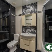 - 2 сан.узла, облицованных плиткой «Керамин», в одном из которых установлена душевая кабина с тропическим душем, массажем, радио, вытяжкой и подсветкой.