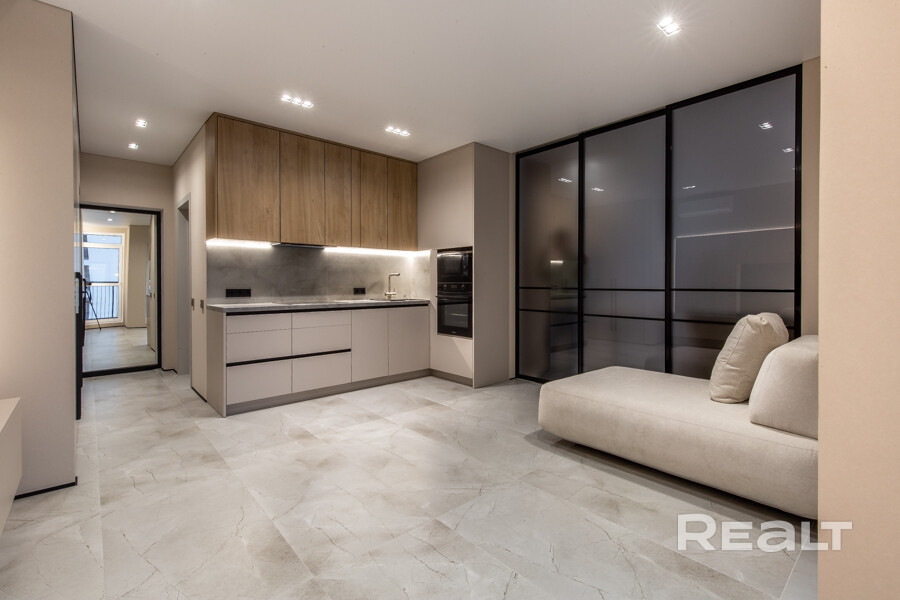 -Ремонт выполнен по дизайн проекту с использованием качественных, премиальных материалов.