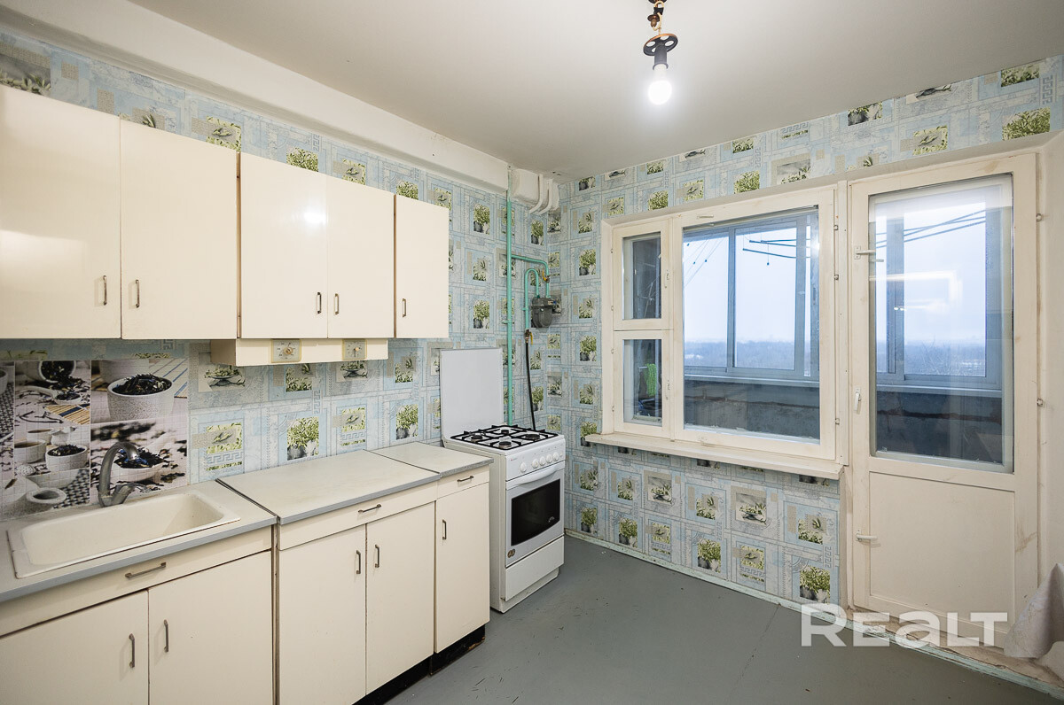 В квартире просторная комната (спальная) - 17.21м2 и кухня - 8.31м2, имеется застекленная лоджия (алюминиевые рамы) и кладовая-гардеробная