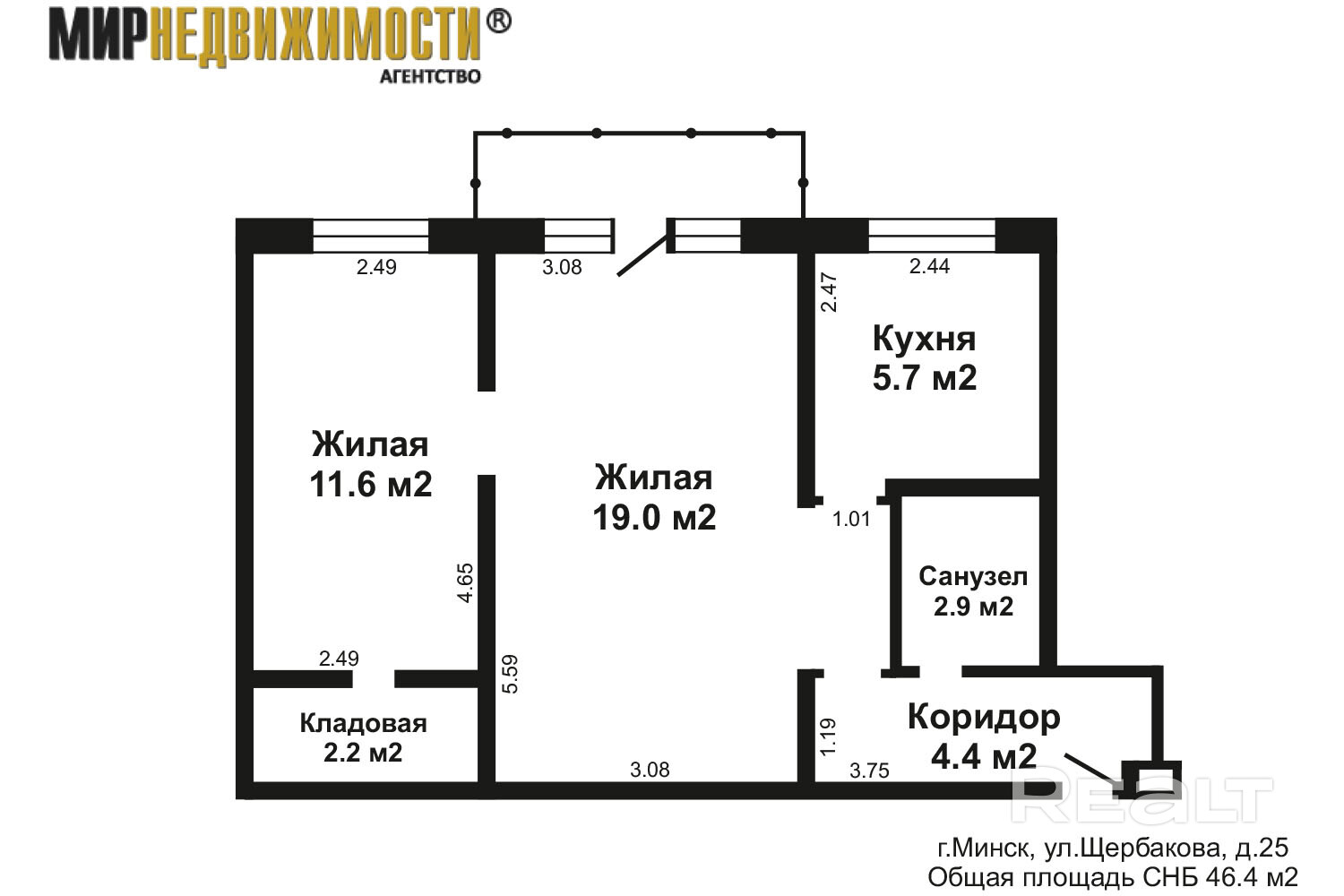 Продается 2-комнатная квартира ул.Щербакова, д.25