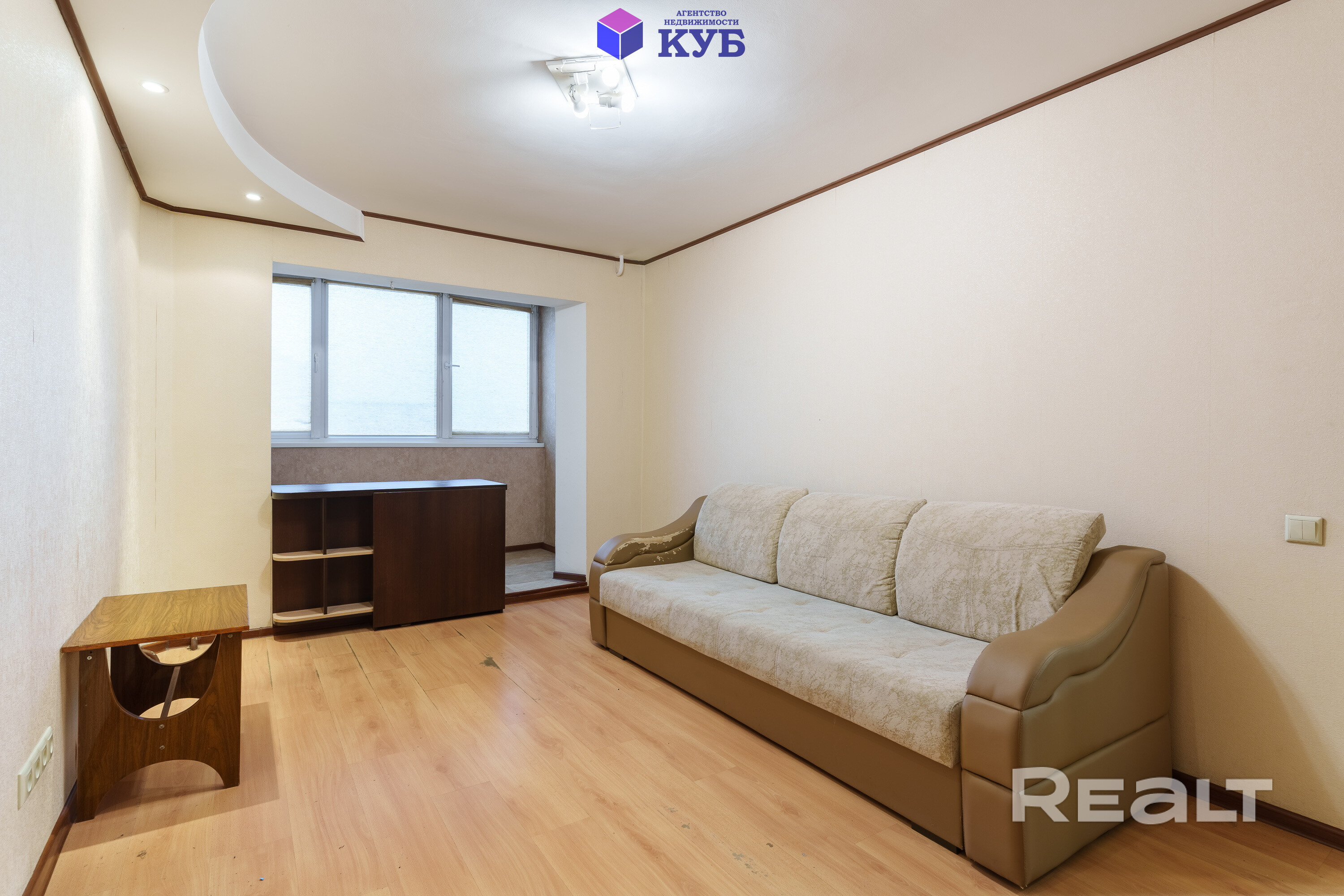 Жилое состояние с мебелью и техникой. Квартира идеальна для сдачи в аренду. Металлическая входная дверь. 2 шкафа-купе. Встроенная кухня, холодильник, стиральная машина, диван. Стеклопакеты ПВХ. На полу в комнате ламинат, на кухне – линолеум, потолки окрашены. Лоджия утеплена.