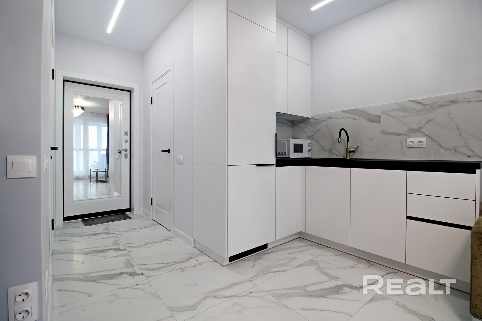 Качественный и стильный ремонт – встроенный кухонный гарнитур со встроенной импортной техникой, испанская плитка, американская краска на стенах – готовый вариант как для жизни, так и для сдачи в аренду