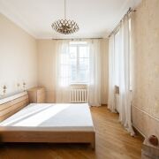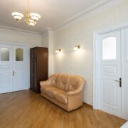 В квартире сделан хороший ремонт. 3 комнаты, раздельный санузел, теплая и уютная кухня, просторный коридор. В квартире высокие потолки, много света и пространства. На полу уложен паркет. Межкомнатные двери отрестоврированы для сохранения особенной атмосферы и истории этого места