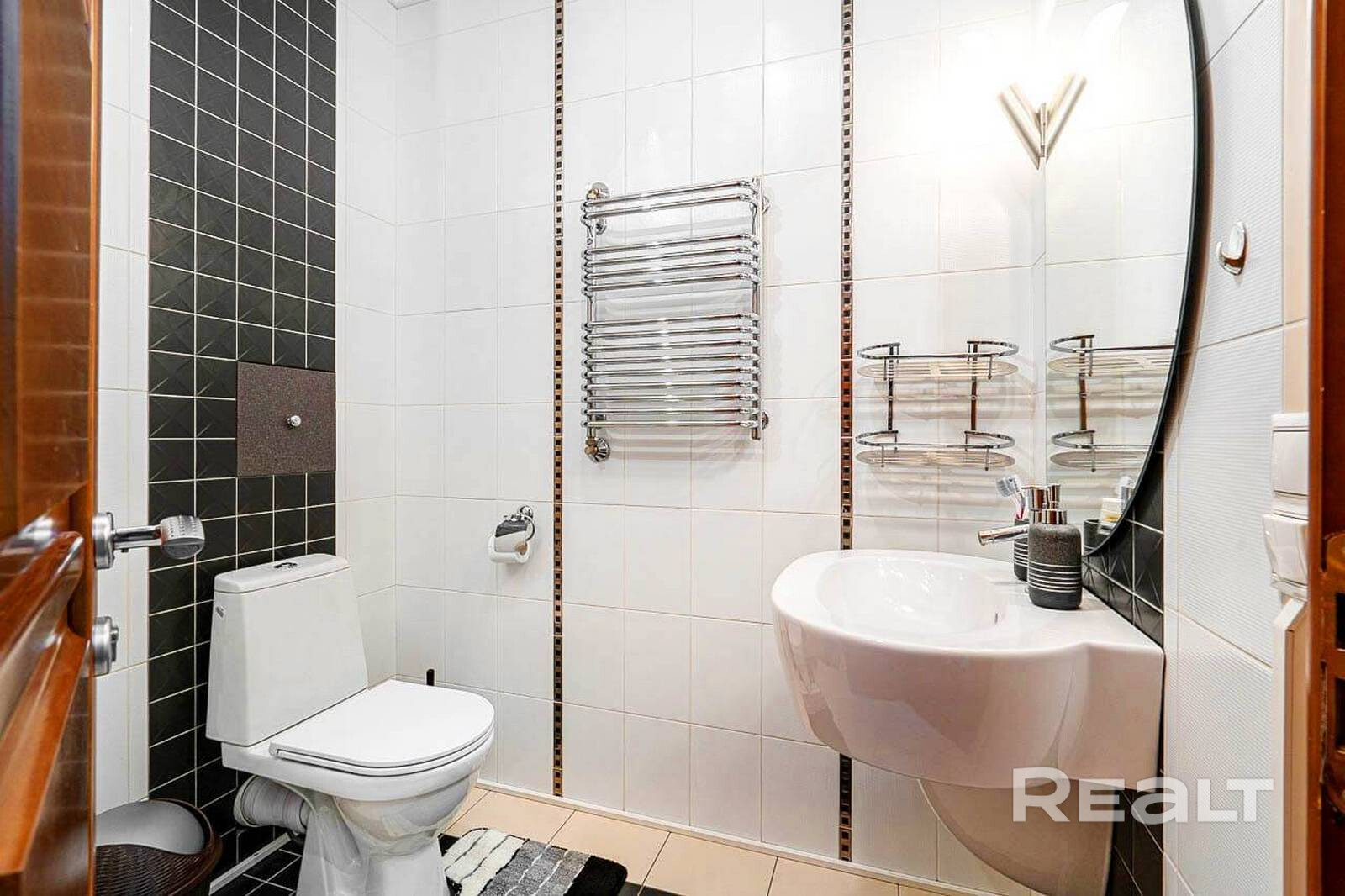В квартире: 1). Три санузла с бойлерами и подогревом полов (2 ванные и душевая кабина) - 9.3 м2, 6.4 м2, 5.1 м2; 2) Гардеробная обуви - 3.5 м2; 3) Гардеробная одежды - 8.4 м2; 4) Постирочная - 5.5 м2; 5) Кухня - 28.9 м2; 6) Кабинет - 17.8 м2; 7) Три спальни - 28.5 м2, 25.2 м2, 18.1 м2; 8) Гостиная - 38.7 м2; 9) Большая лоджия (длина – 6,27 м)
