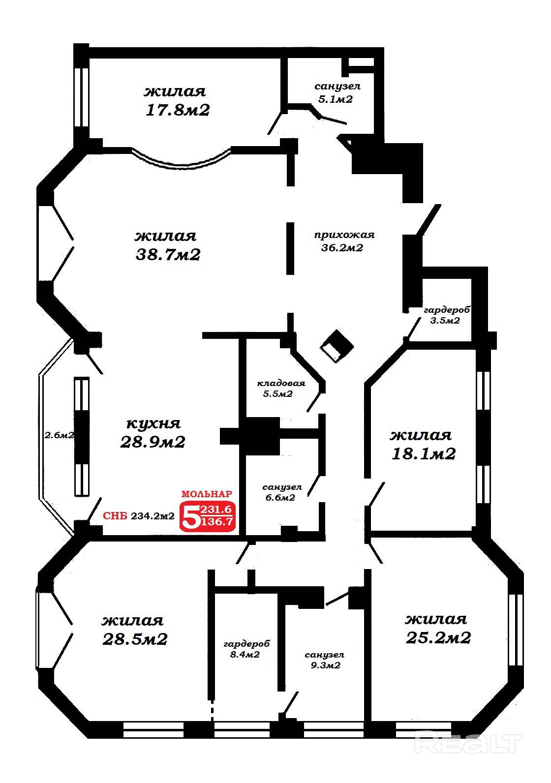 Ваш шанс! Предоставляем уникальную возможность стать владельцем частички истории, приобретя 5-комнатную квартиру площадью 234,2 м2.