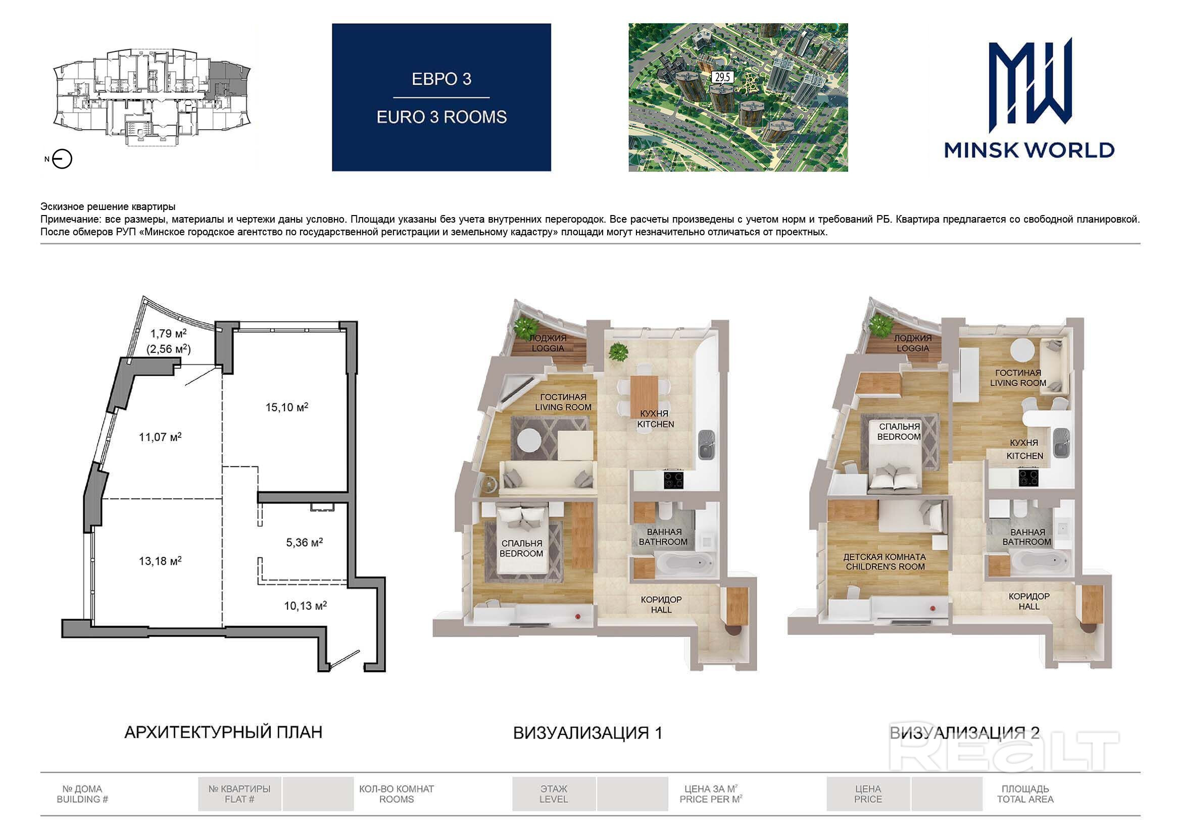 Квартира 3 в Минск Мир / Дом 29.5, площадью 56 кв.м.