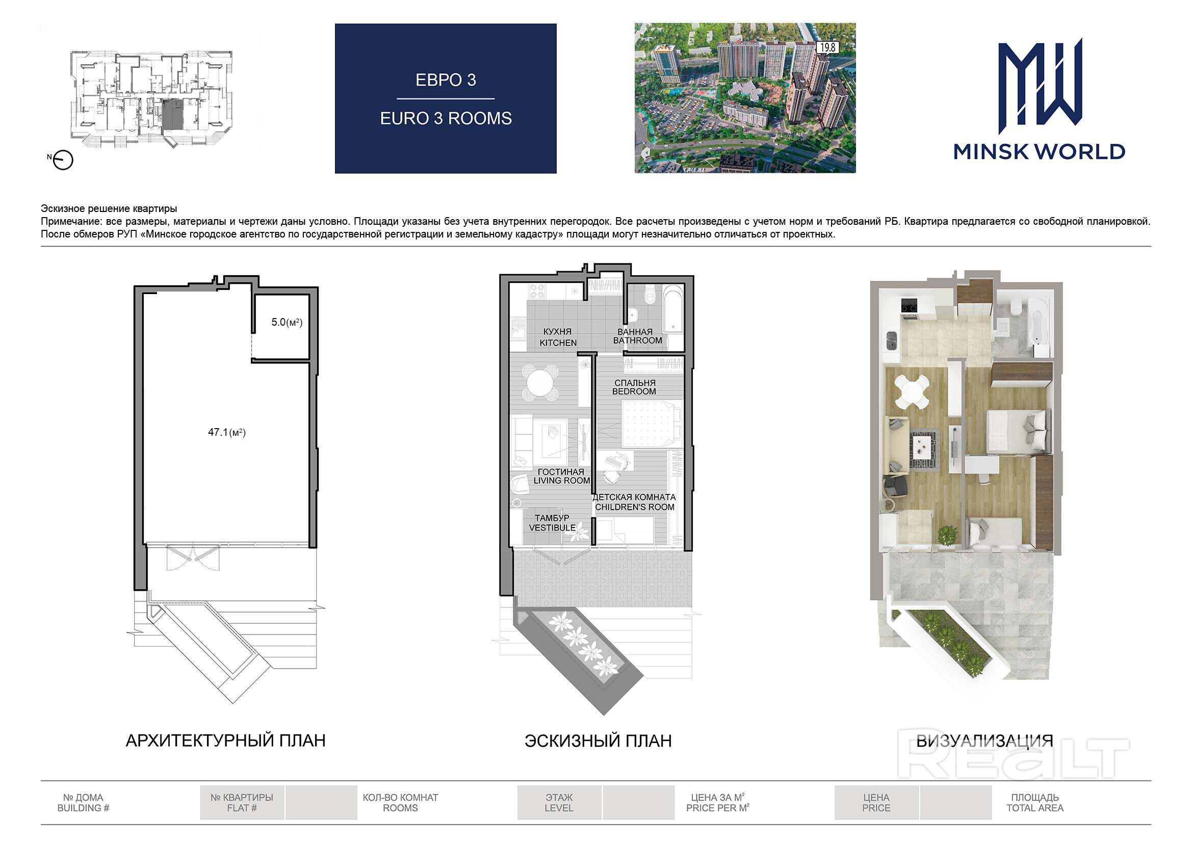 Квартира 1 в Минск Мир / Дом 19.8, площадью 52 кв.м.