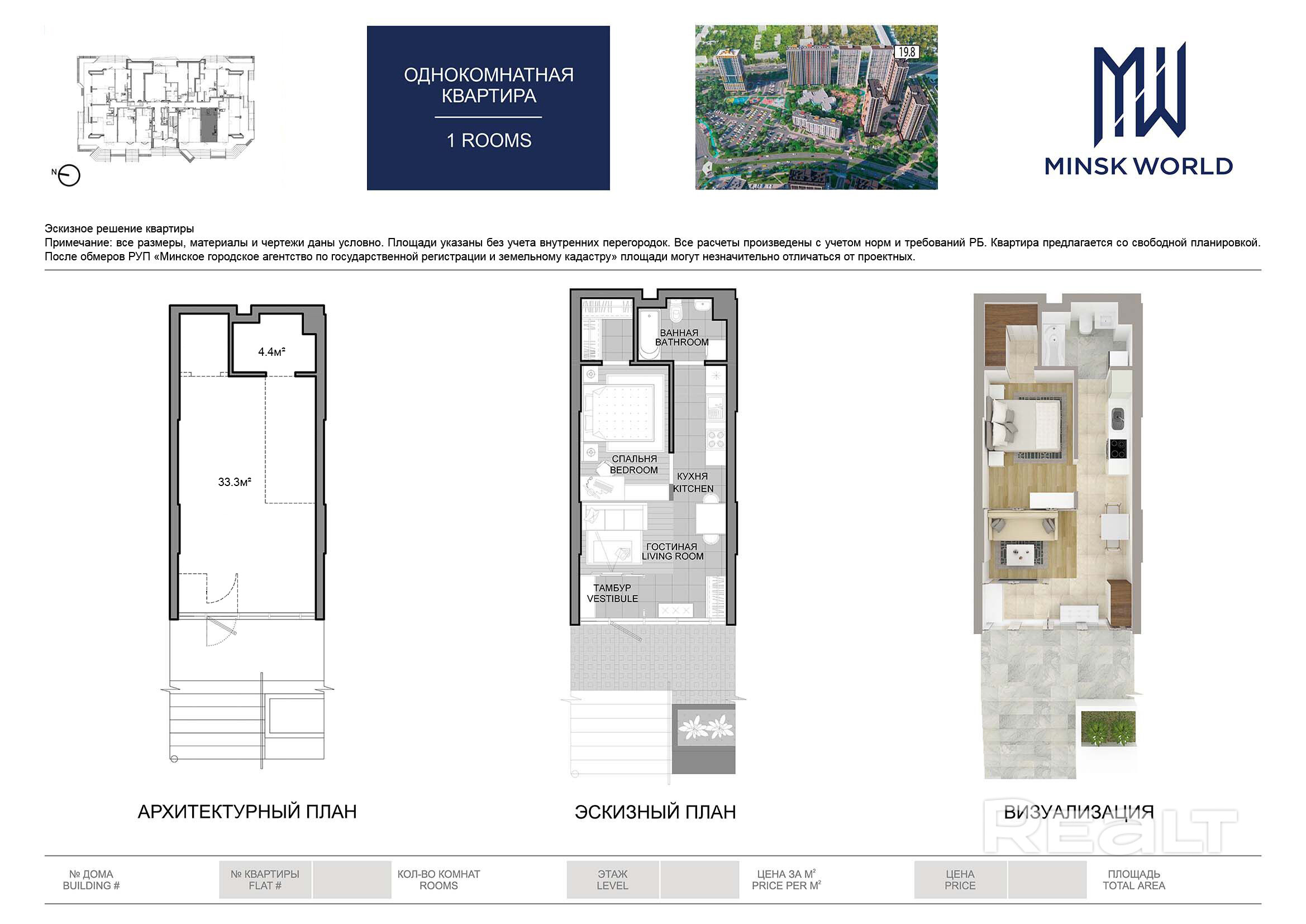 Квартира 2 в Минск Мир / Дом 19.8, площадью 37 кв.м.