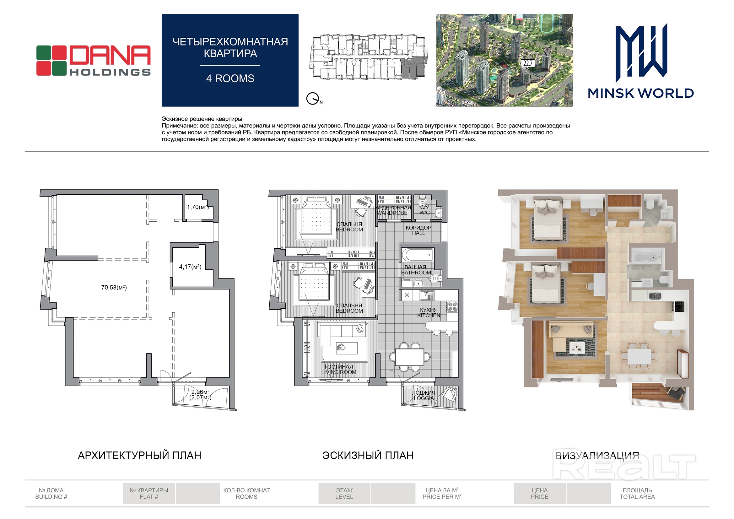 Квартира 34 в Минск Мир / Дом 22.7, площадью 78 кв.м.