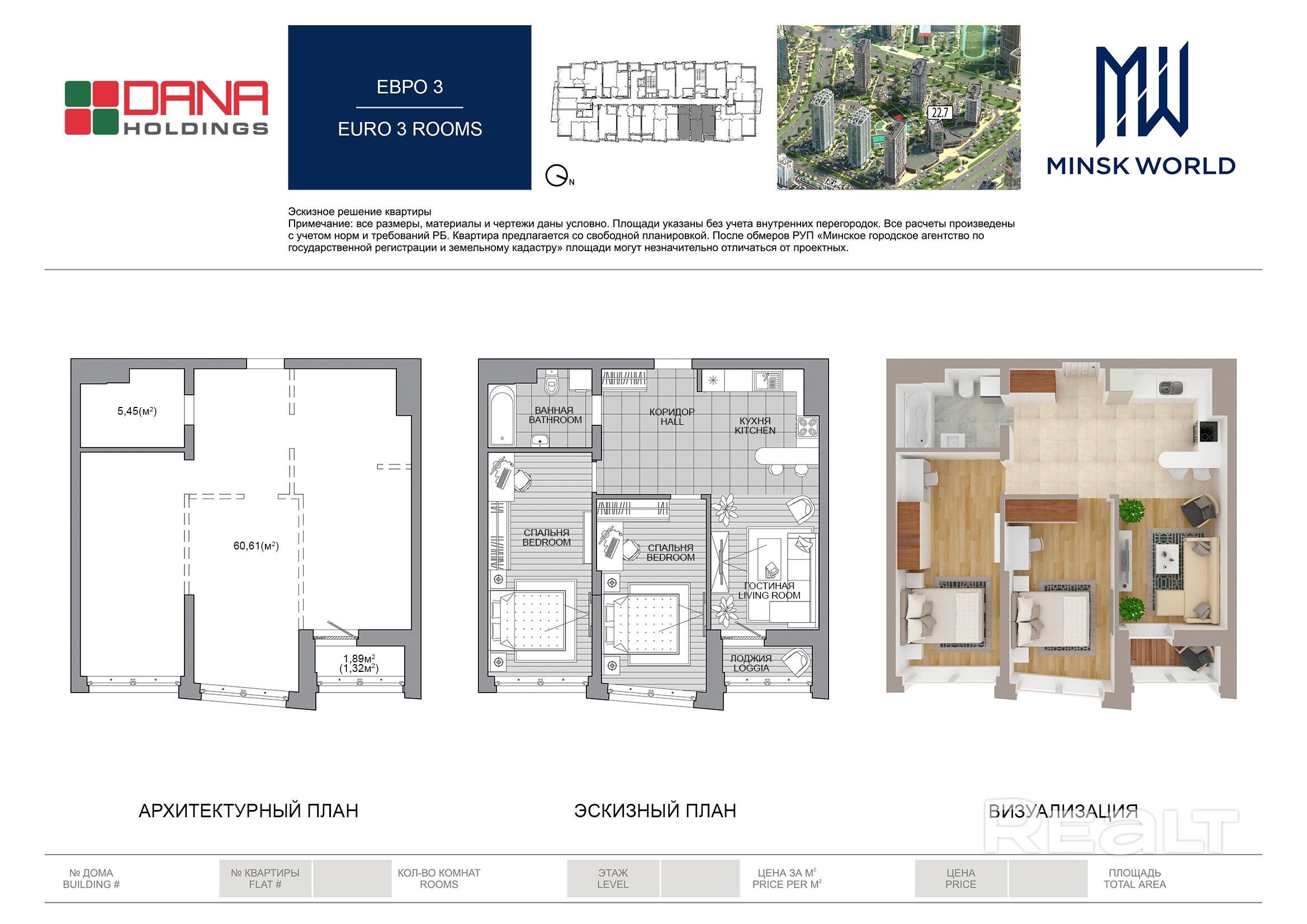 Квартира 61 в Минск Мир / Дом 22.7, площадью 67 кв.м.