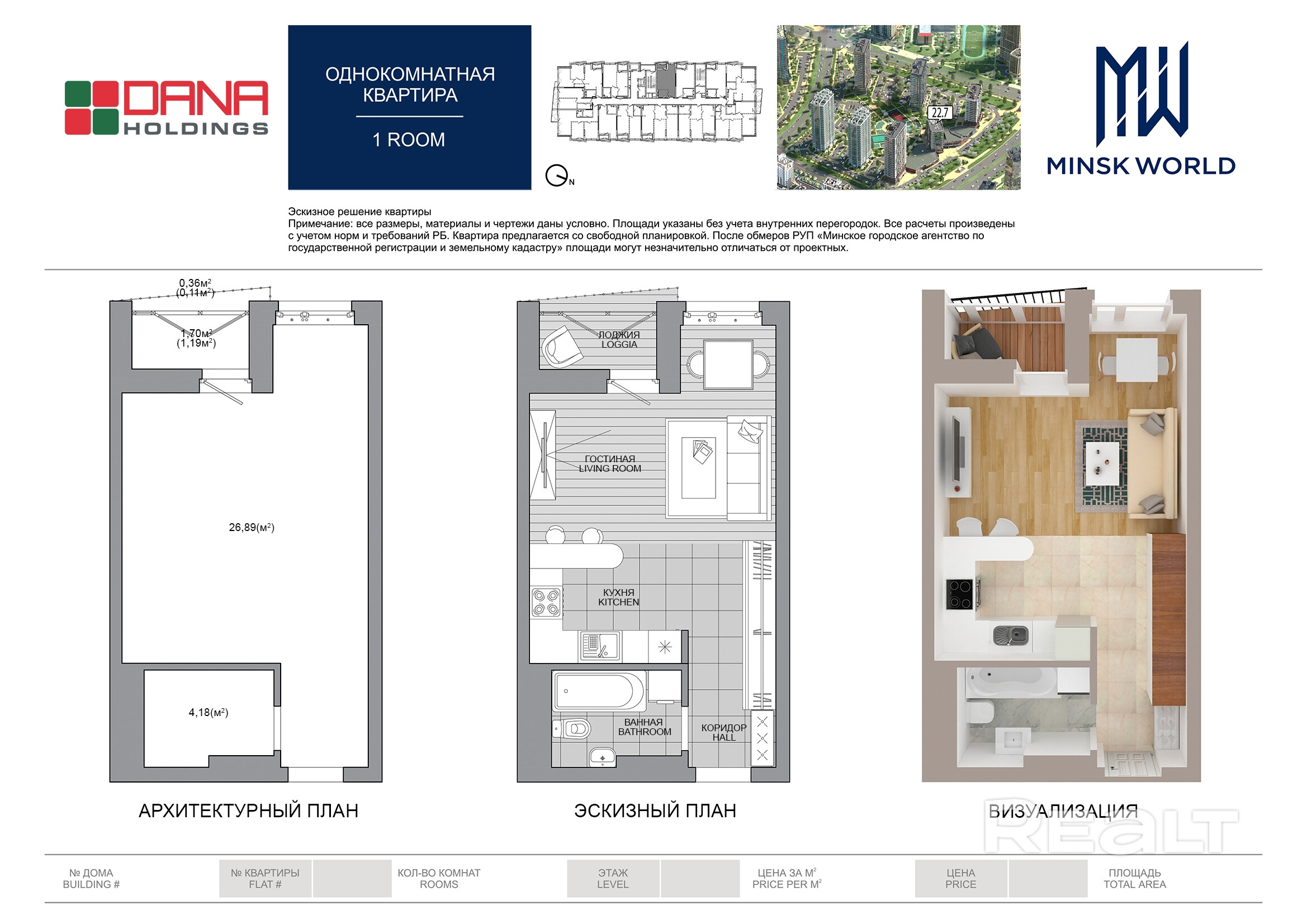 Квартира 43 в Минск Мир / Дом 22.7, площадью 32 кв.м.