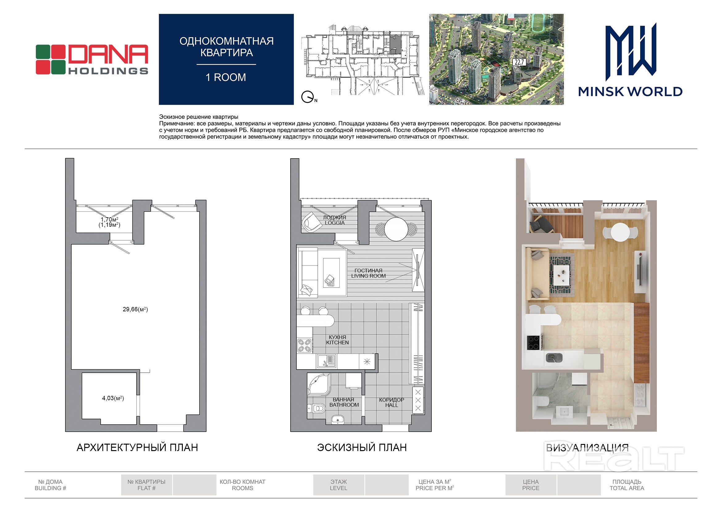 Квартира 3 в Минск Мир / Дом 22.7, площадью 34 кв.м.