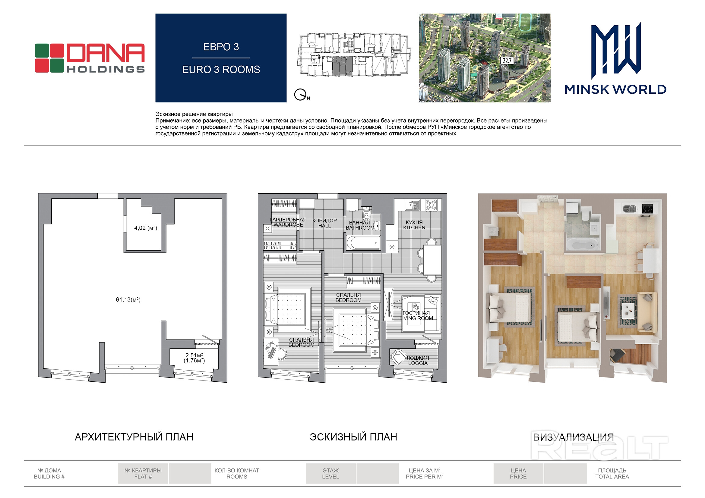 Квартира 107 в Минск Мир / Дом 22.7, площадью 66 кв.м.