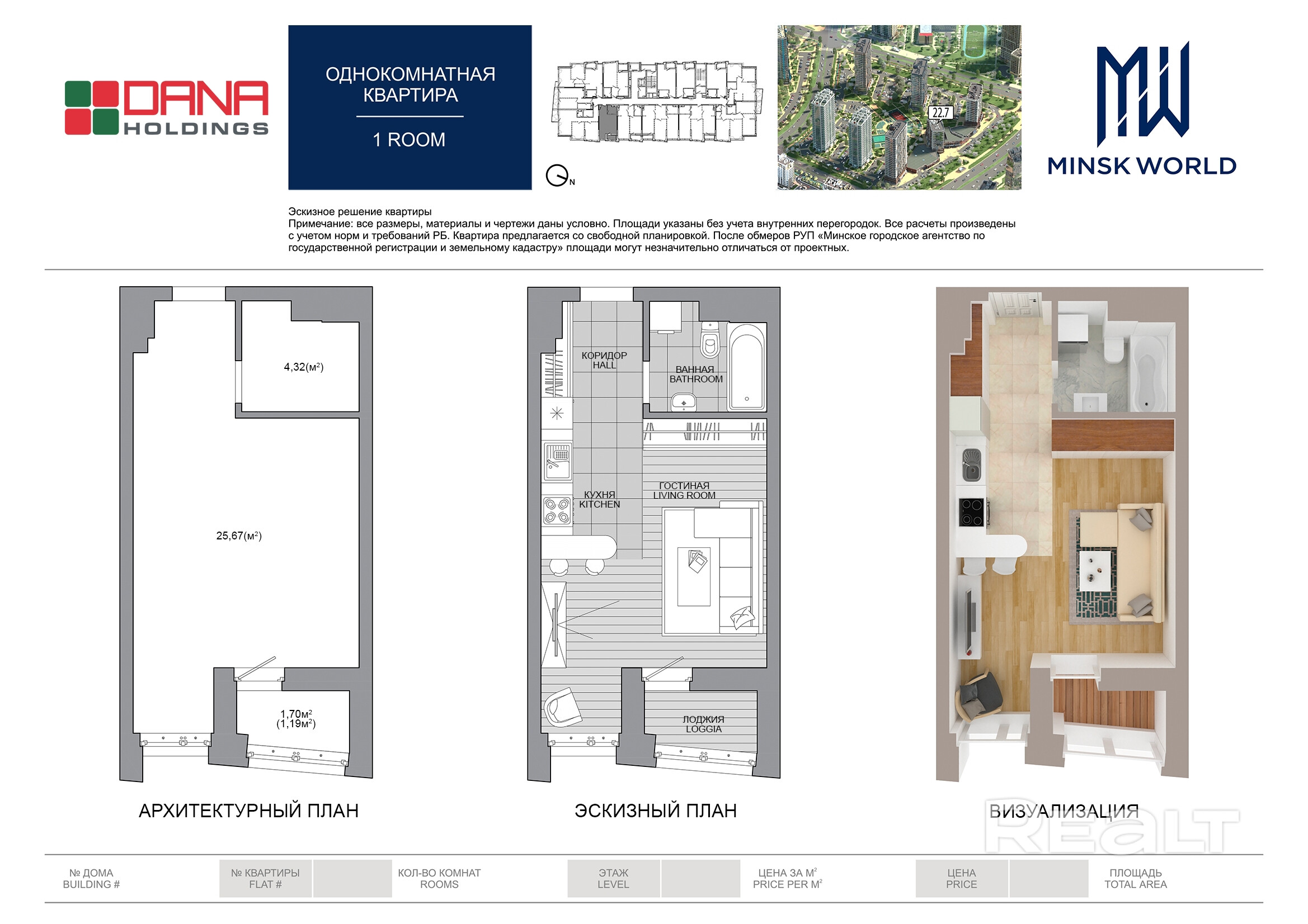 Квартира 64 в Минск Мир / Дом 22.7, площадью 31 кв.м.