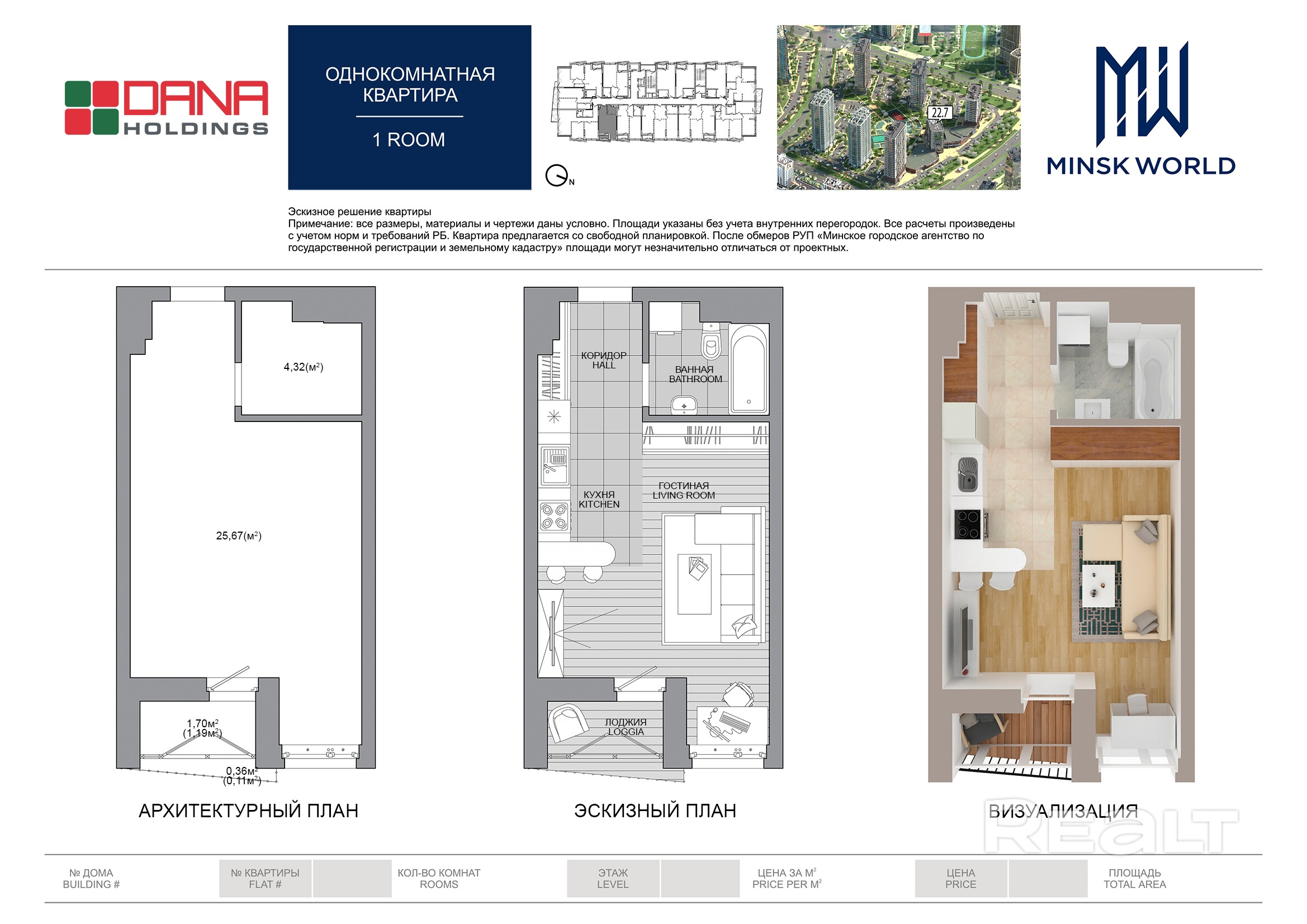 Квартира 51 в Минск Мир / Дом 22.7, площадью 31 кв.м.