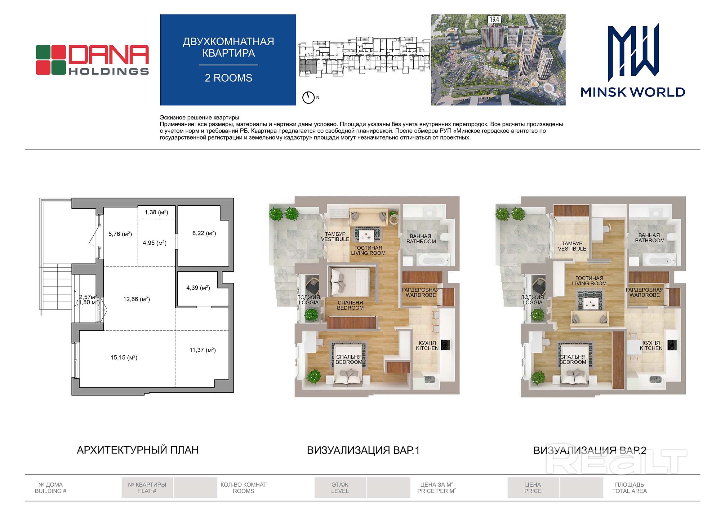 Квартира 1 в Минск Мир / Дом 19.4, площадью 67 кв.м.