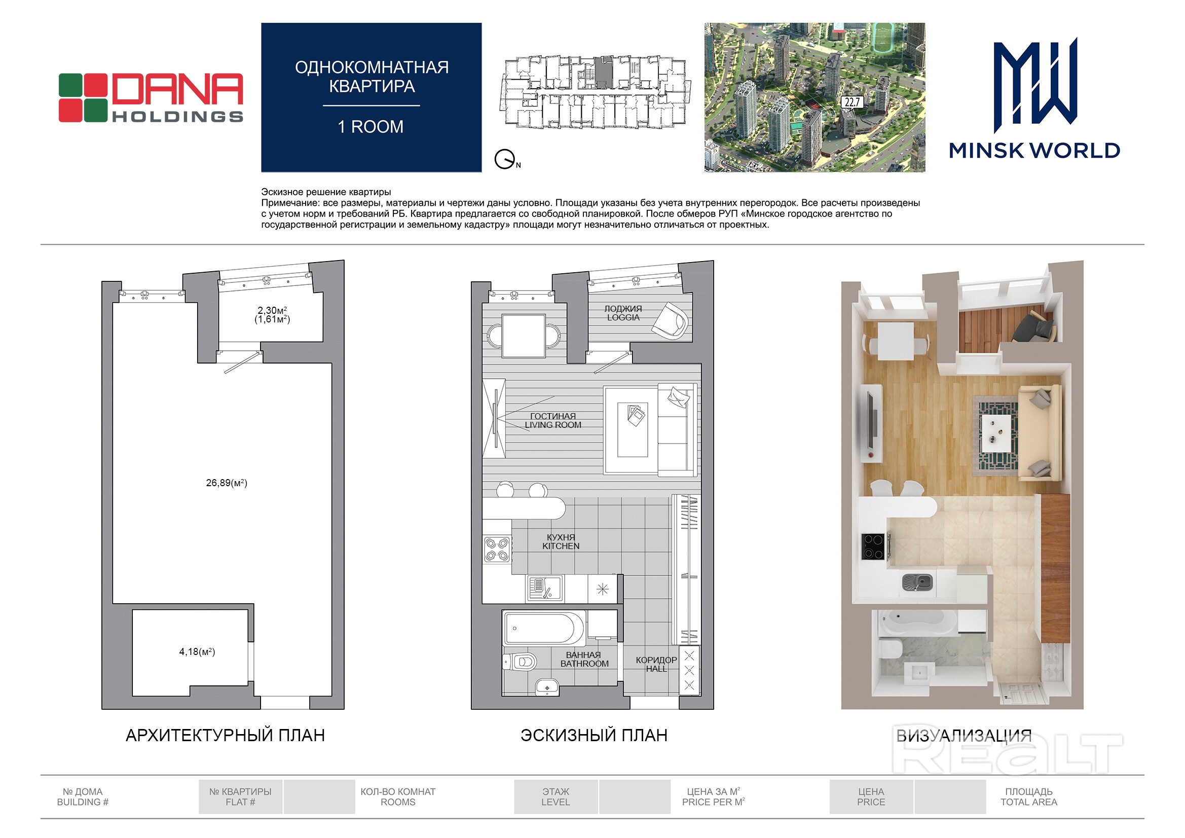Квартира 56 в Минск Мир / Дом 22.7, площадью 32 кв.м.