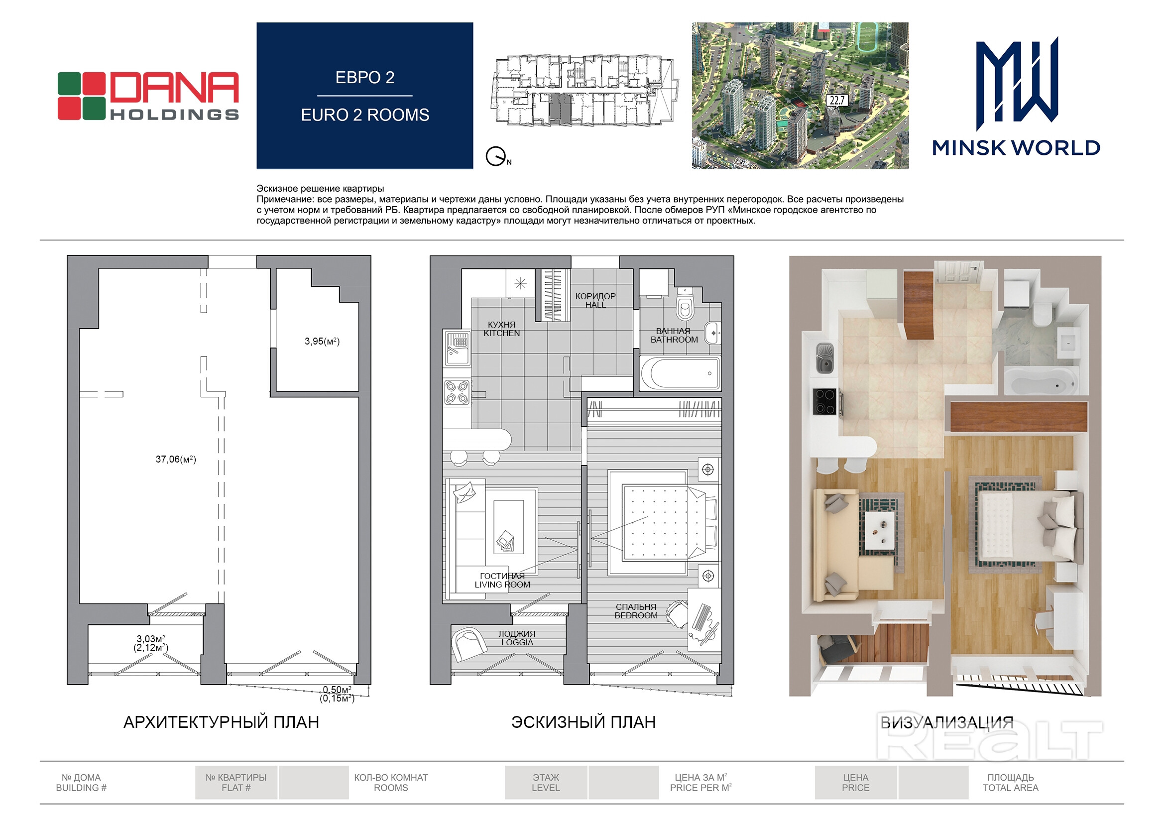 Квартира 87 в Минск Мир / Дом 22.7, площадью 43 кв.м.