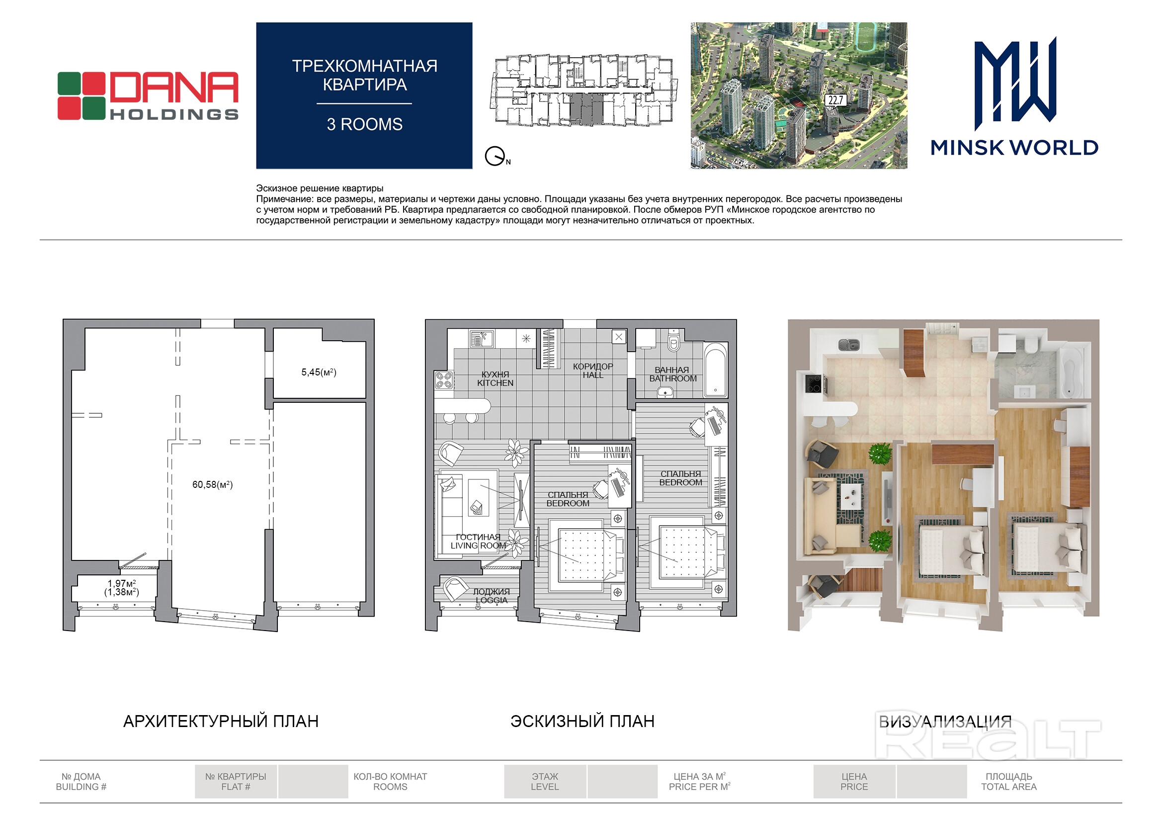Квартира 75 в Минск Мир / Дом 22.7, площадью 67 кв.м.