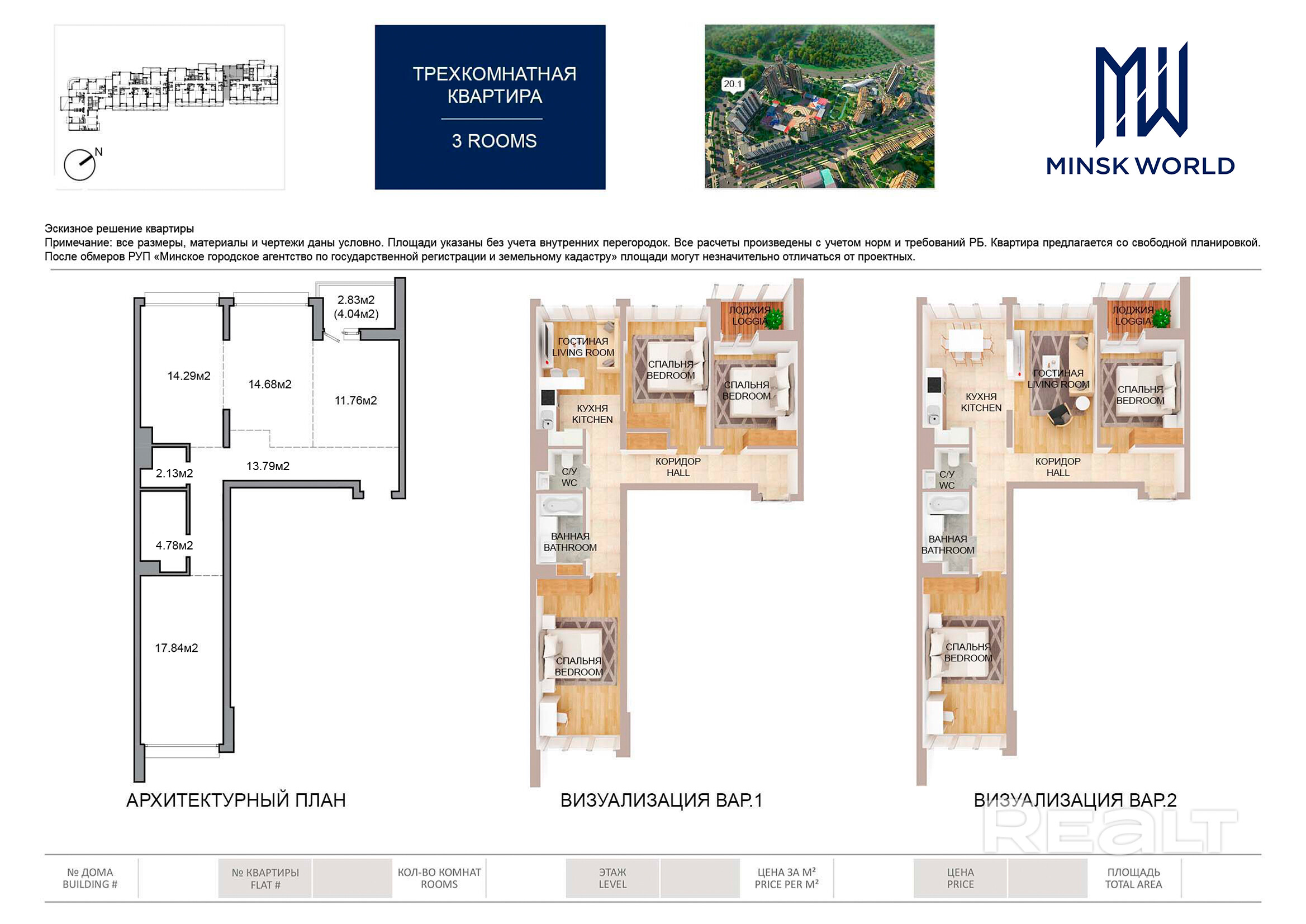 Квартира 3 в Минск Мир / Дом 20.1, площадью 82 кв.м.