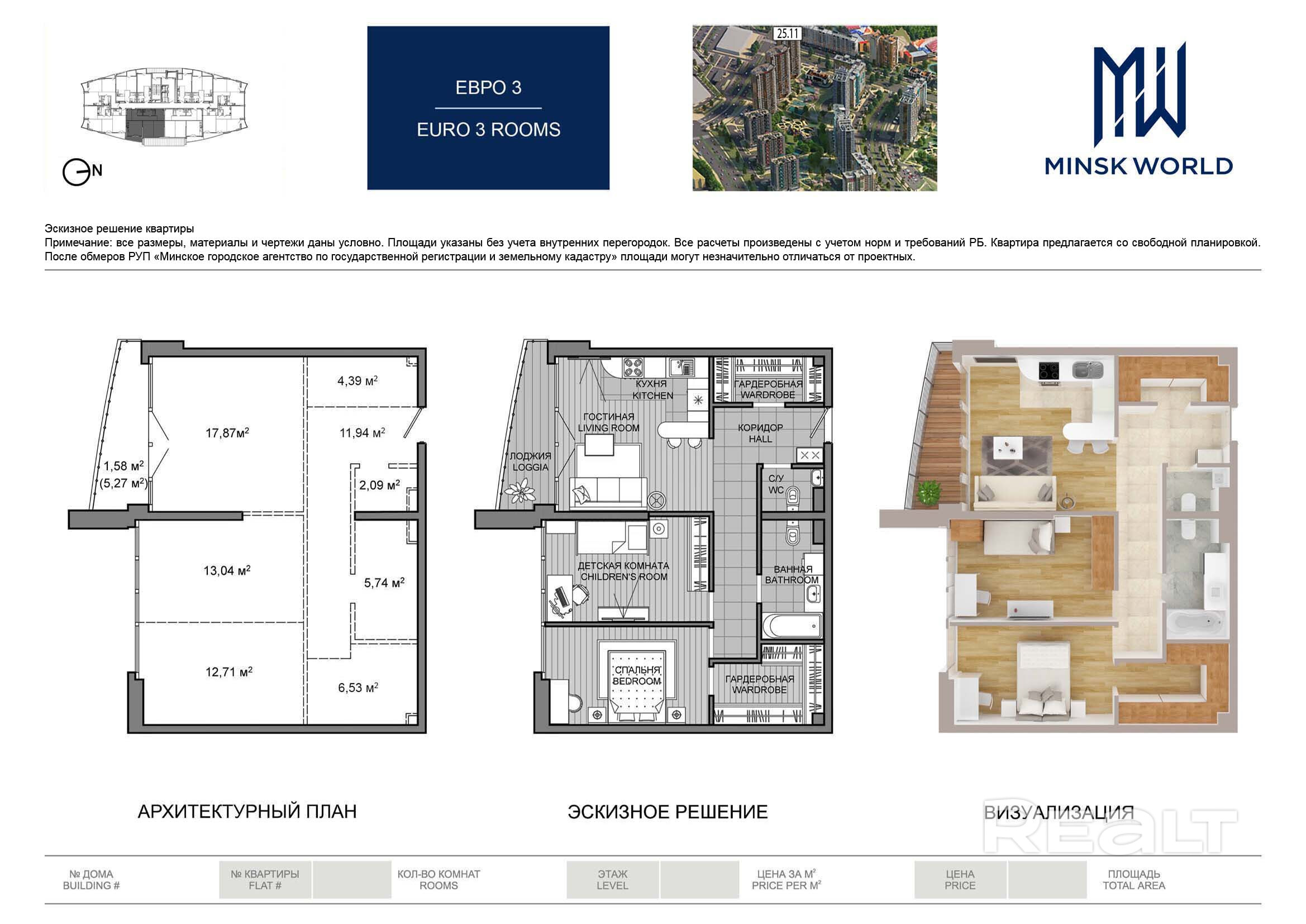 Квартира 14 в Минск Мир / Дом 25.11, площадью 75 кв.м.