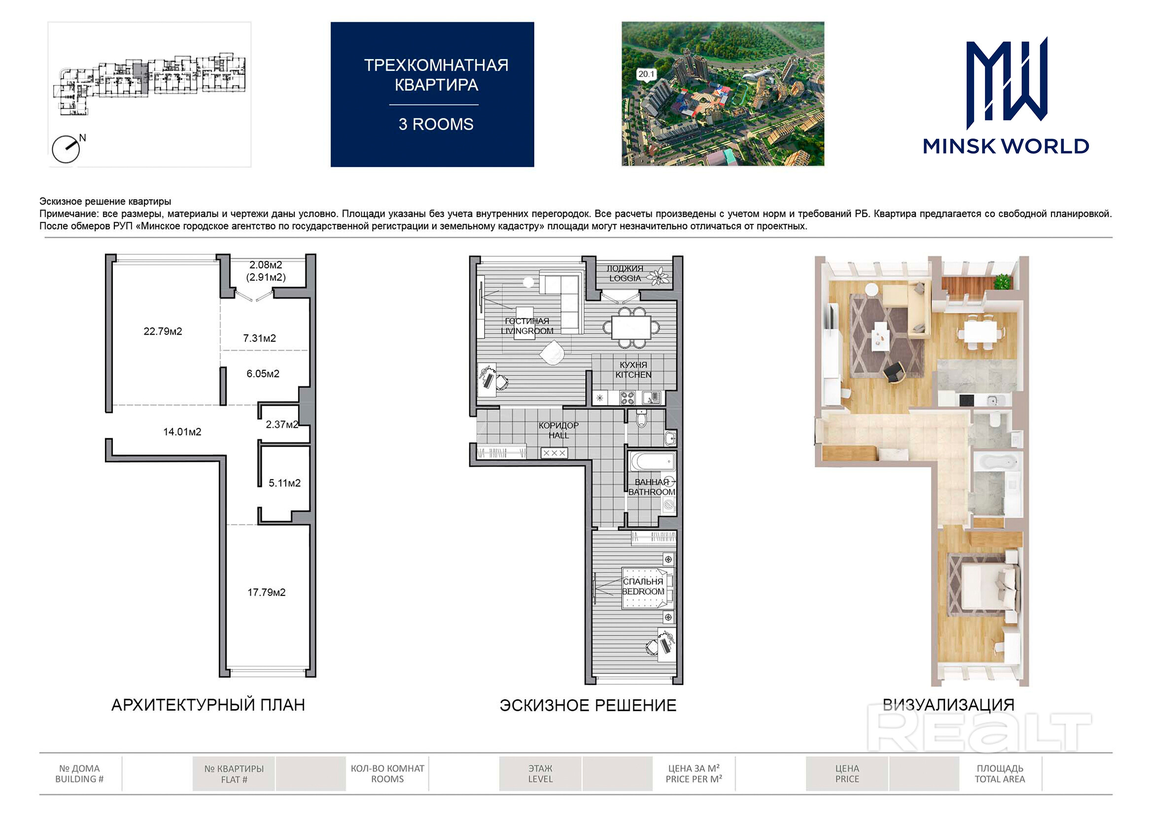 Квартира 234 в Минск Мир / Дом 20.1, площадью 78 кв.м.