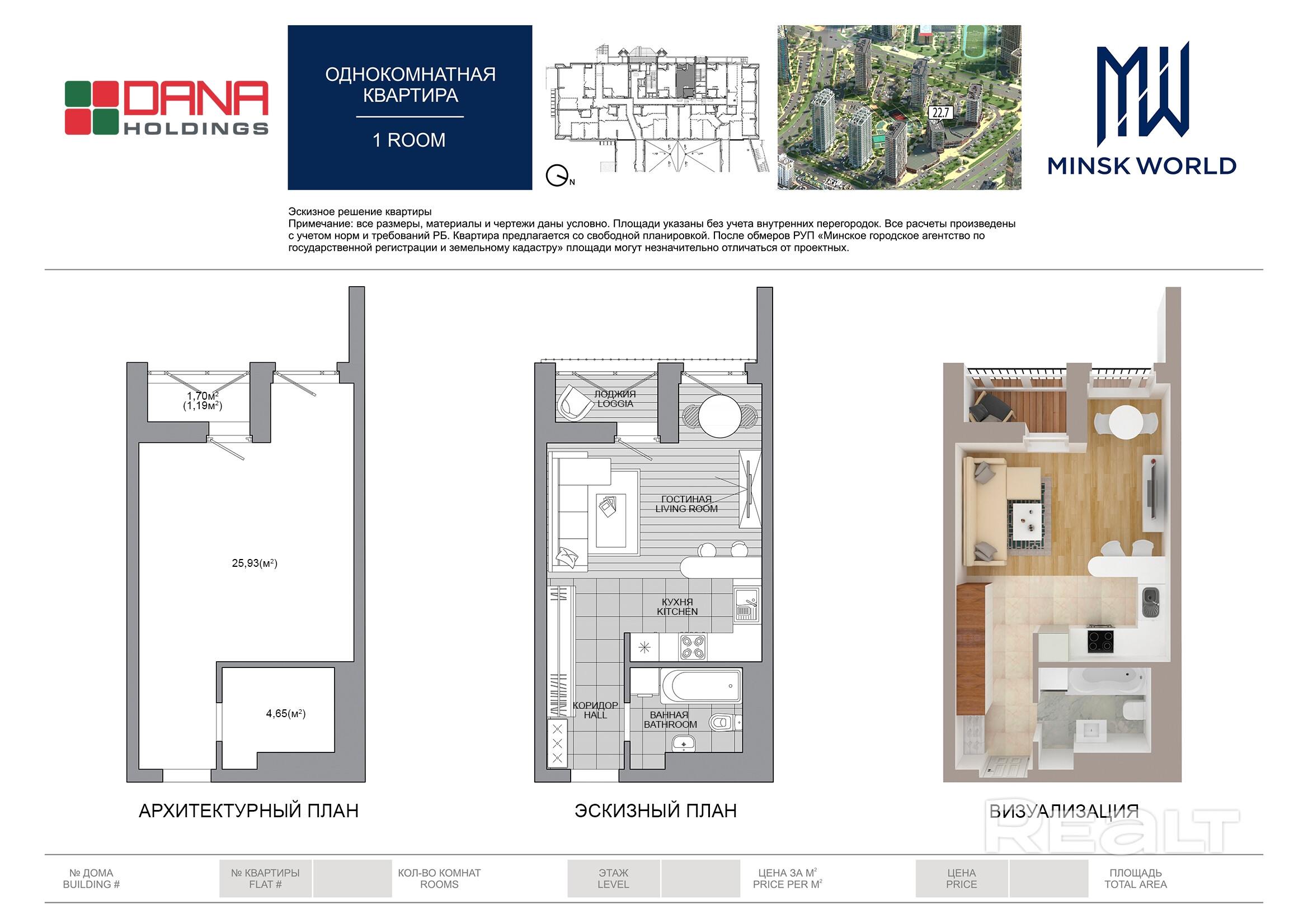 Квартира 2 в Минск Мир / Дом 22.7, площадью 31 кв.м.