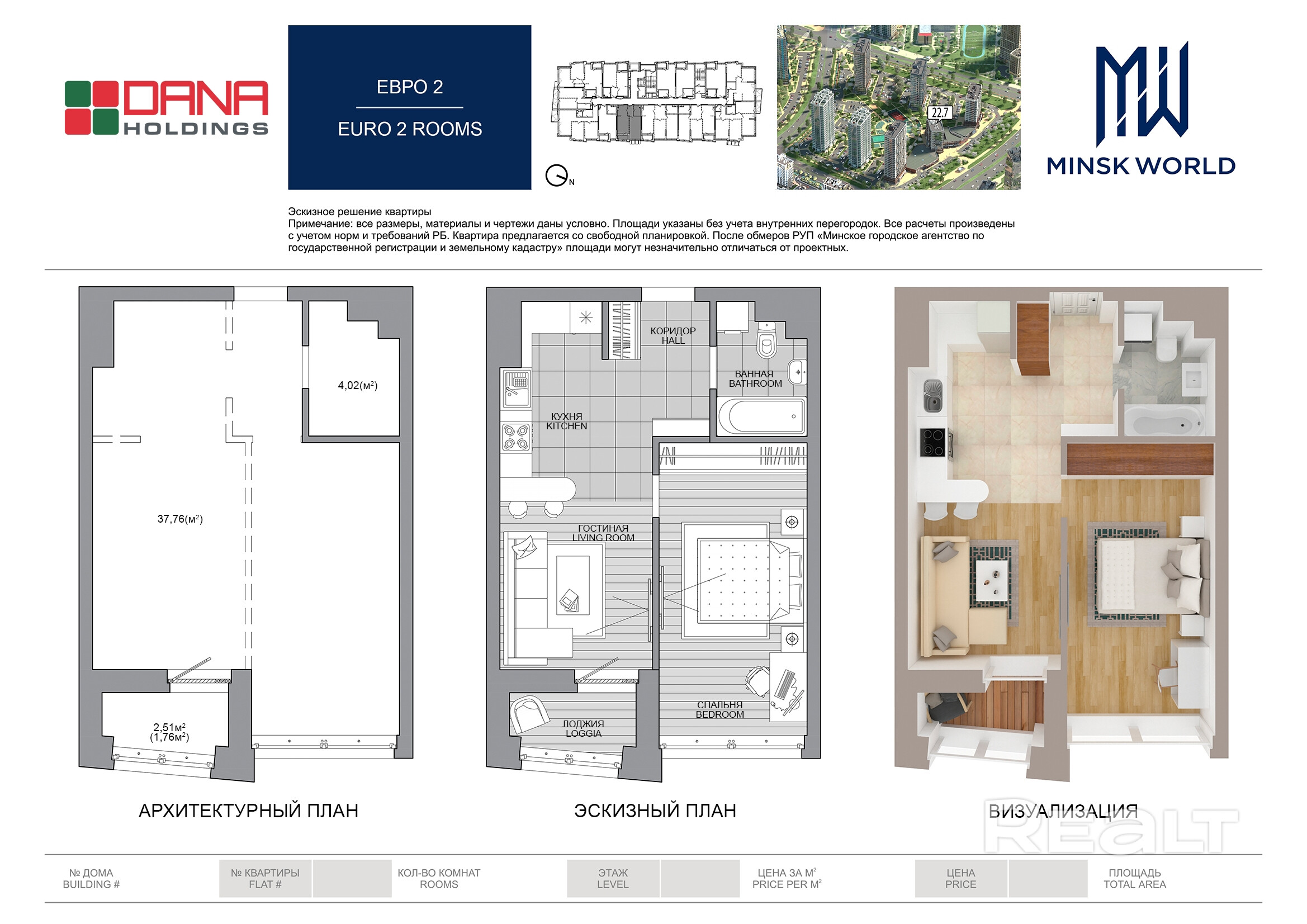 Квартира 24 в Минск Мир / Дом 22.7, площадью 43 кв.м.