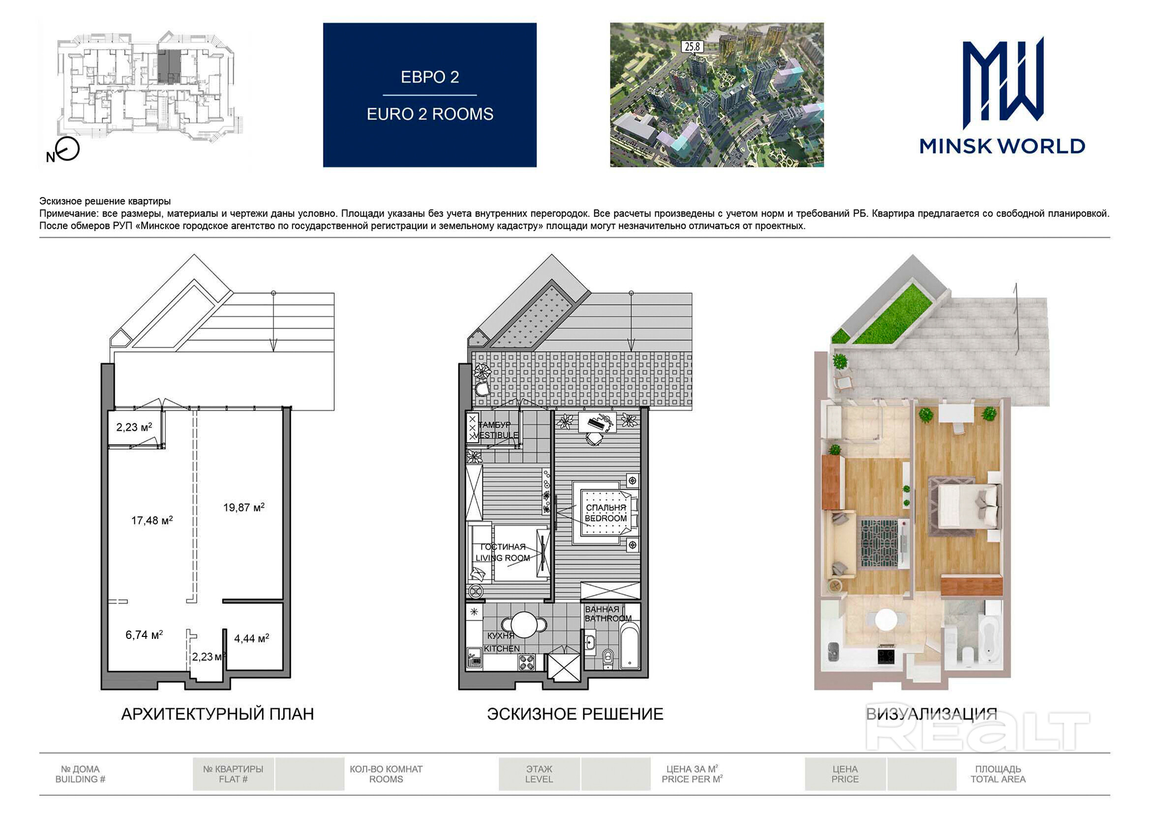 Квартира 1 в Минск Мир / Дом 25.8, площадью 52 кв.м.