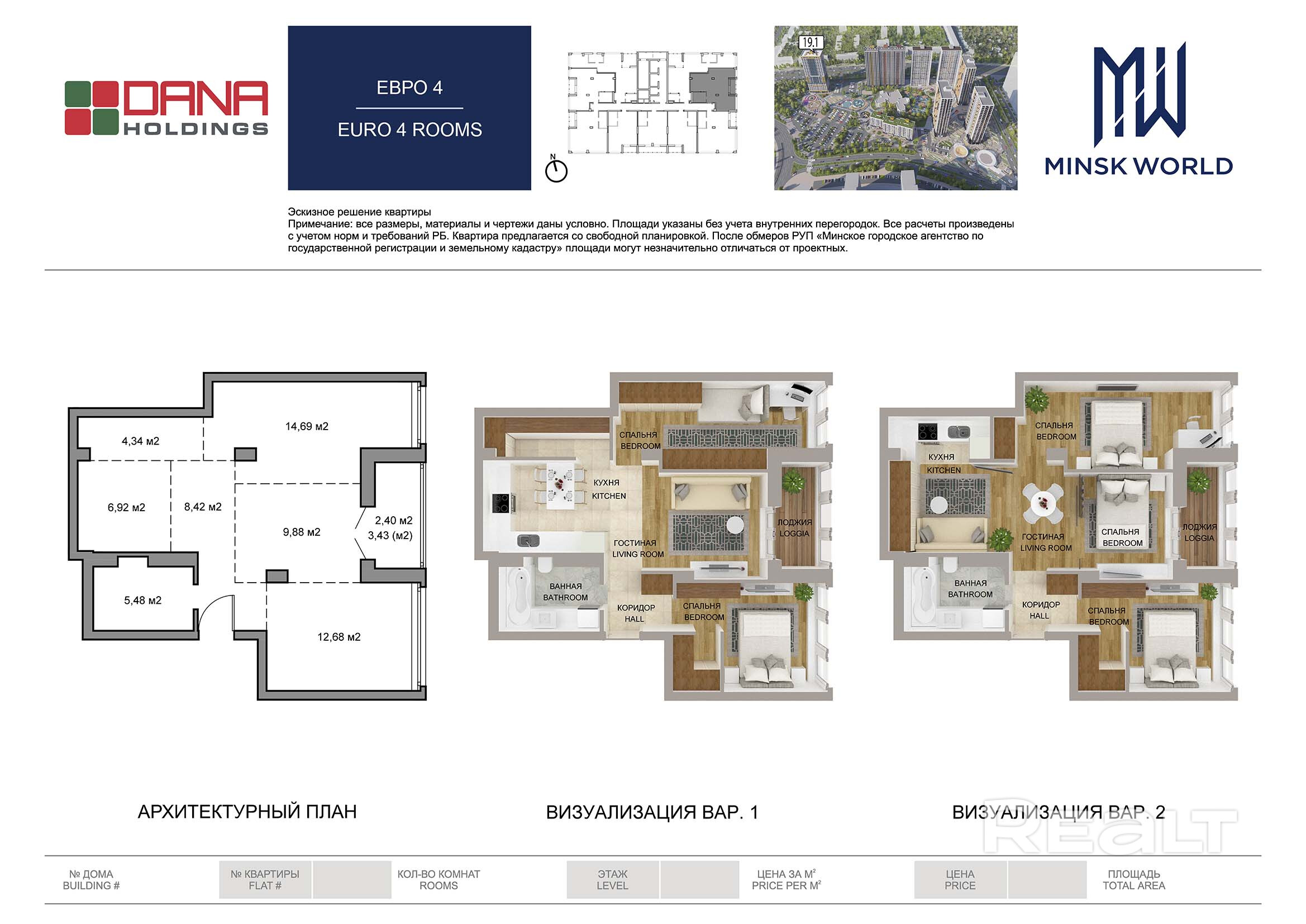 Квартира 2 в Минск Мир / Дом 19.1, площадью 65 кв.м.