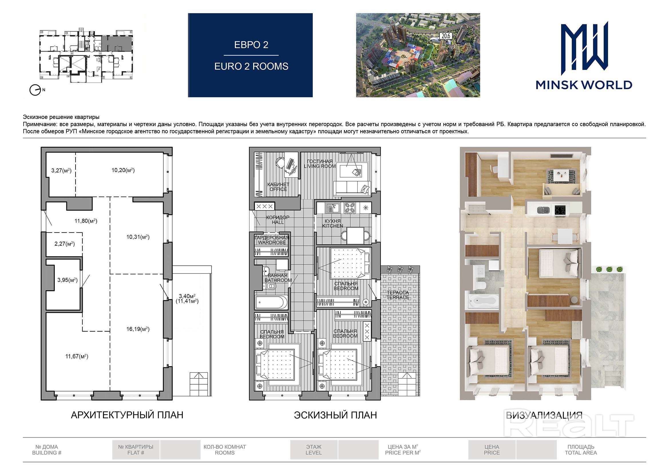 Квартира 1 в Минск Мир / Дом 20.6, площадью 74 кв.м.