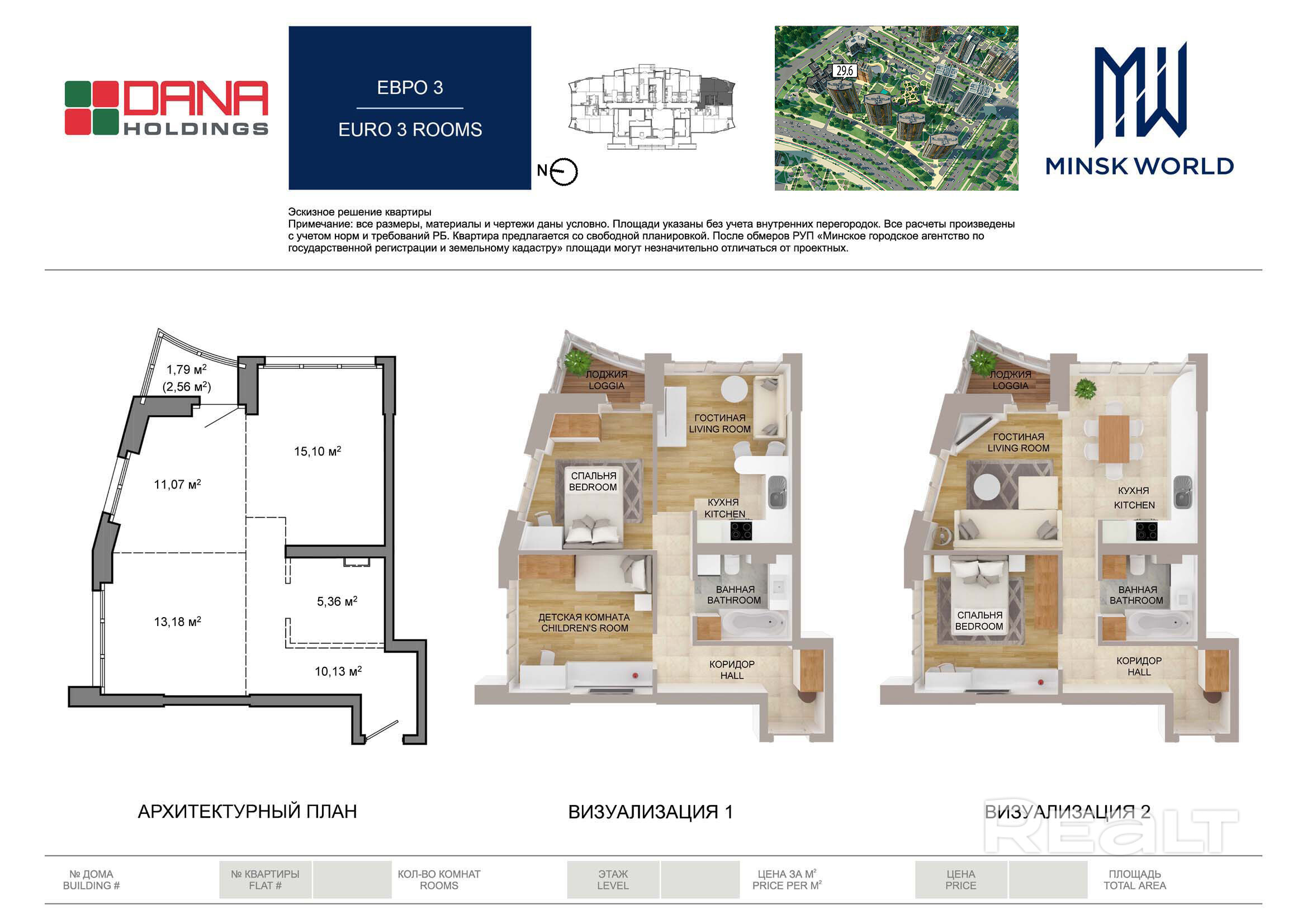 Квартира 3 в Минск Мир / Дом 29.6, площадью 55 кв.м.