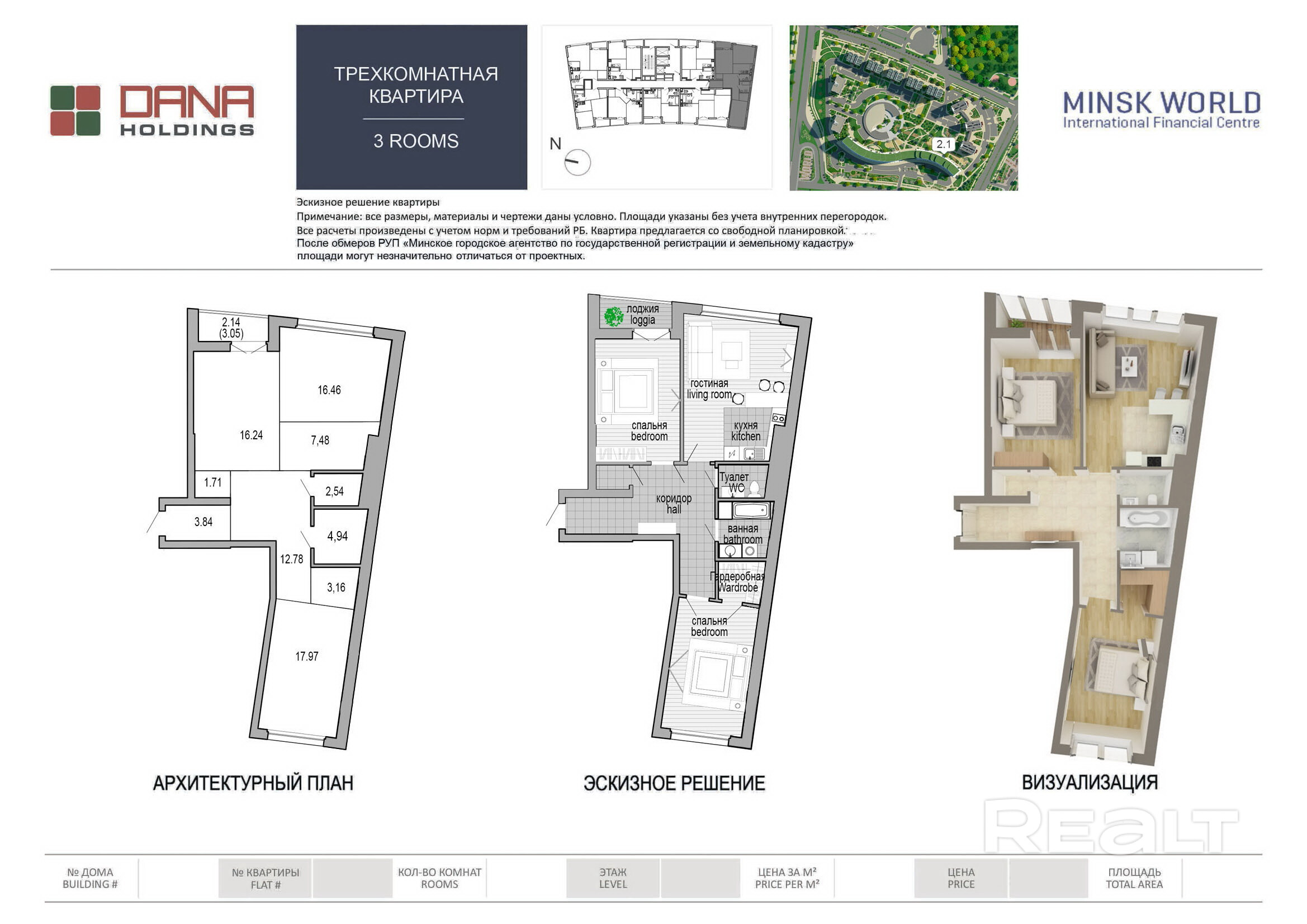 Квартира 797 в Минск Мир / Дом Эмиратс Волна 7с, площадью 89 кв.м.