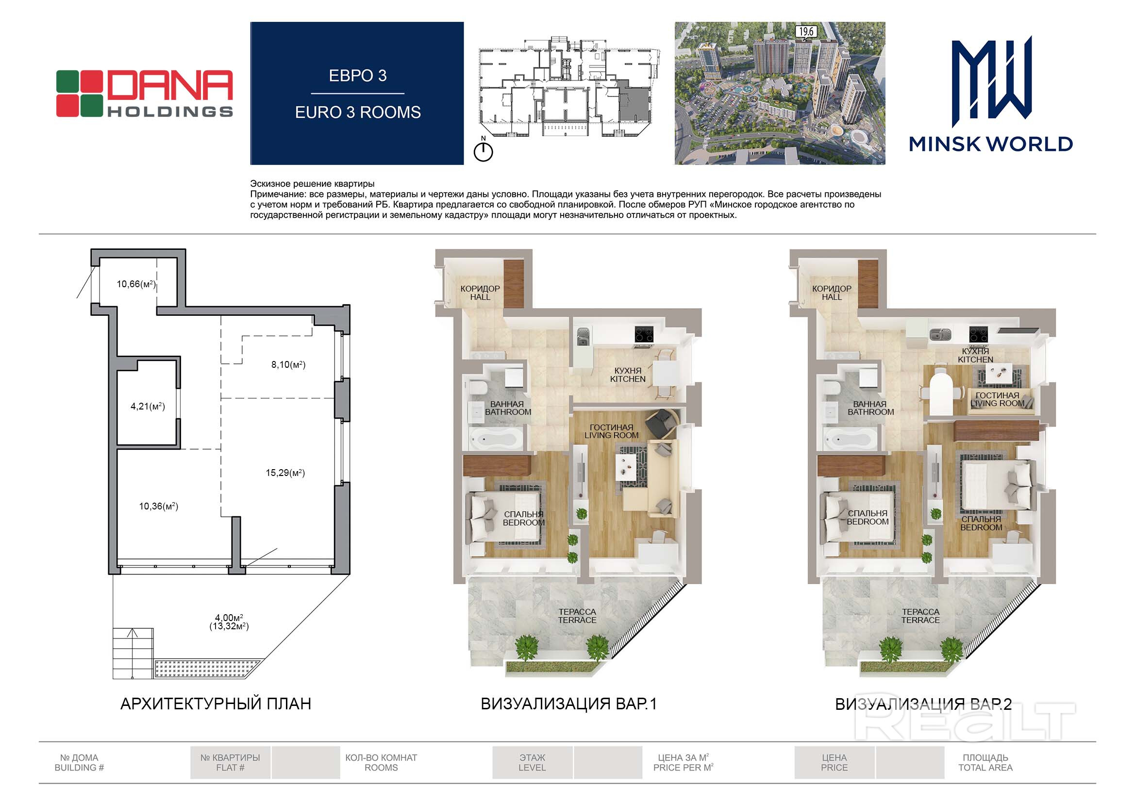 Квартира 1 в Минск Мир / Дом 19.6, площадью 53 кв.м.