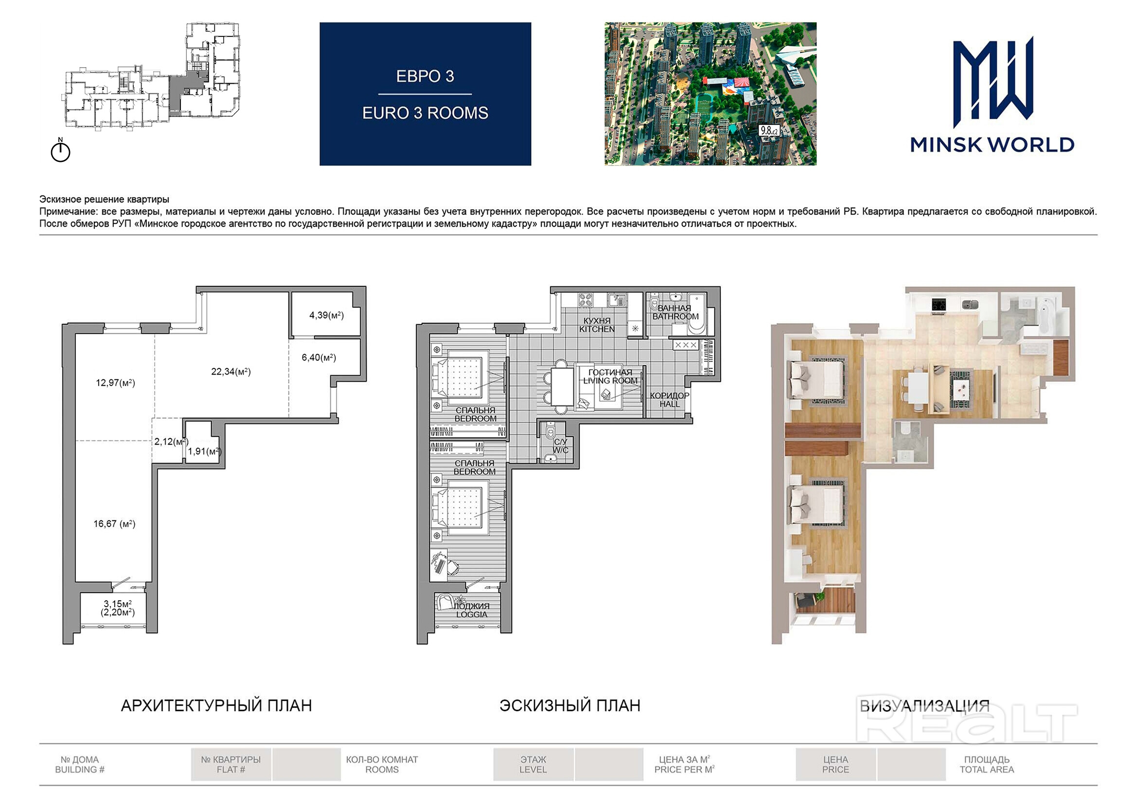 Квартира 164 в Минск Мир / Дом 9.8, площадью 68 кв.м.
