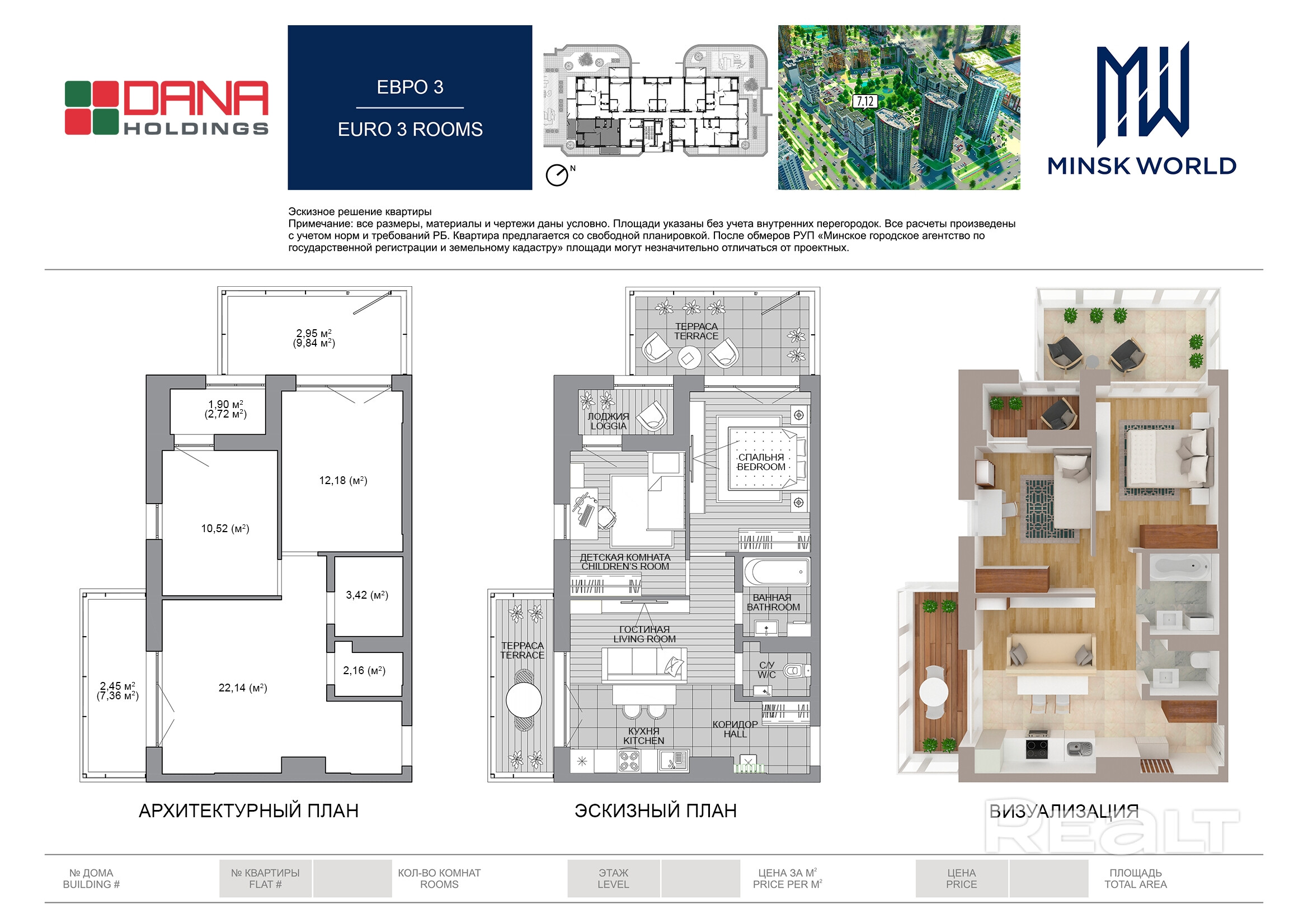 Квартира 2 в Минск Мир / Дом 7.12, площадью 57 кв.м.
