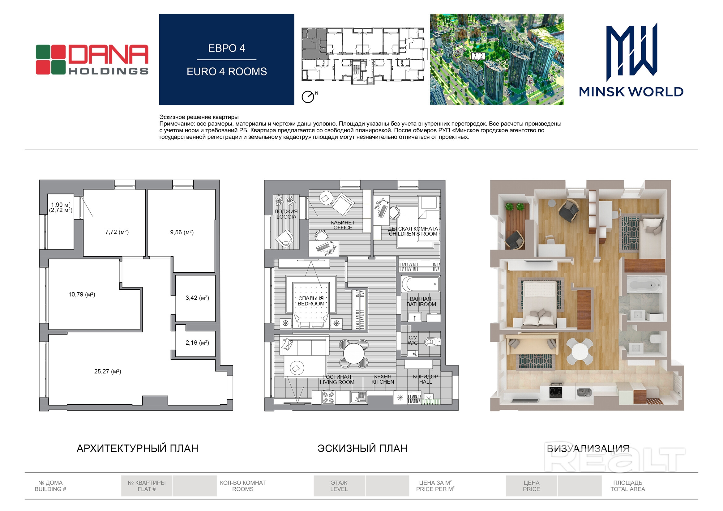 Квартира 63 в Минск Мир / Дом 7.12, площадью 60 кв.м.