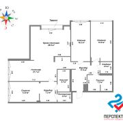 Пентхаус включает в себя: кухню-столовую, гостиную, две детские комнаты, главную спальню с собственным санузлом и постирочной, кладовку, террасу и совмещенный санузел. Высота потолков составляет 3.33 метра, что создает ощущение комфорта и свободы. Выполнен дизайнерский ремонт с использованием высококачественных и экологичных материалов. В жилых комнатах на полу уложена инженерная доска, в прихожей, гостиной и кухне — керамогранит.