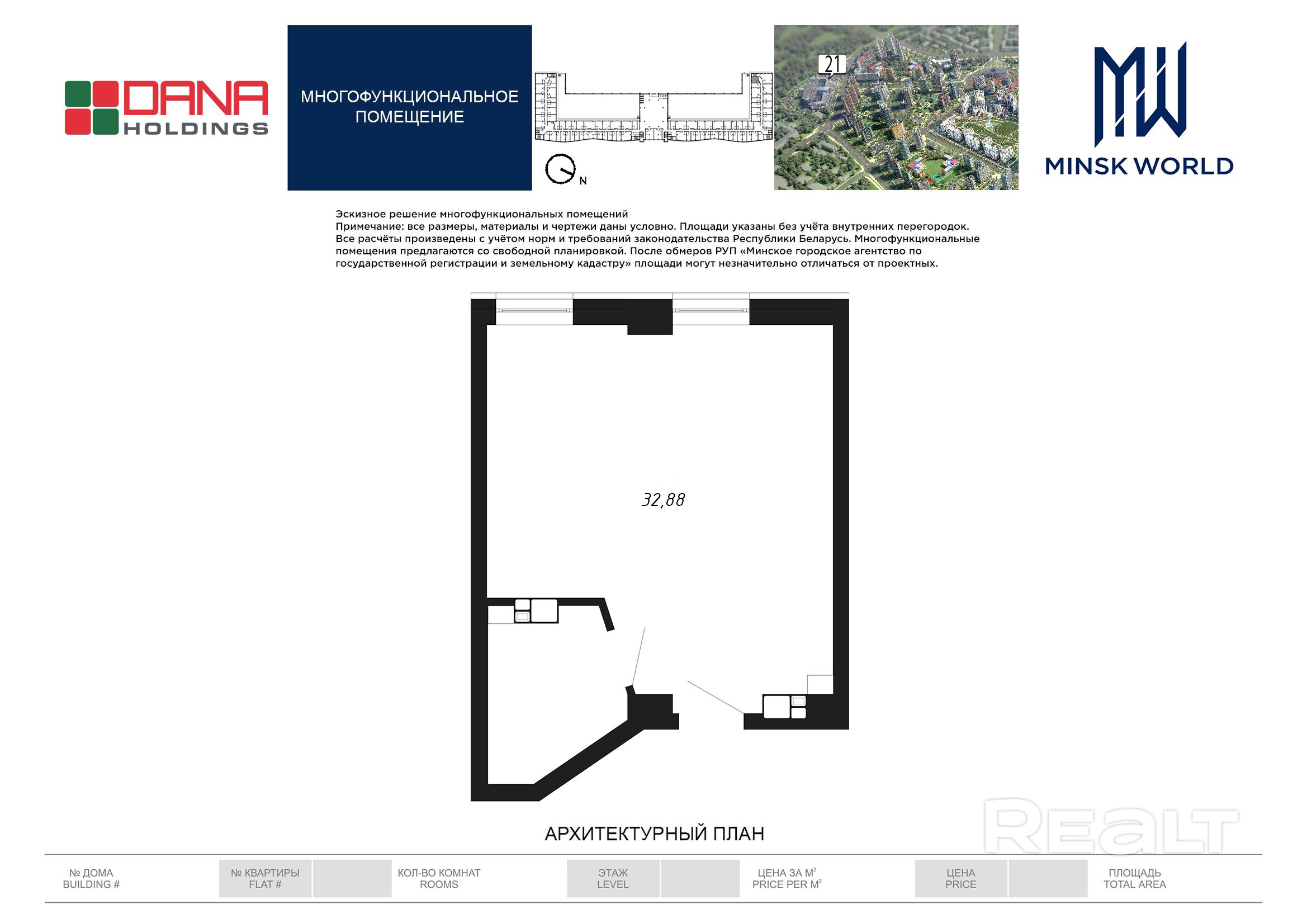 Бизнес-апартаменты 4095 в Минск Мир / Дом 21.1, площадью 32 кв.м.