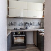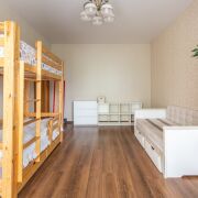 Квартира включает в себя три раздельные жилые комнаты, просторную кухню-гостиную и совмещенный санузел.
