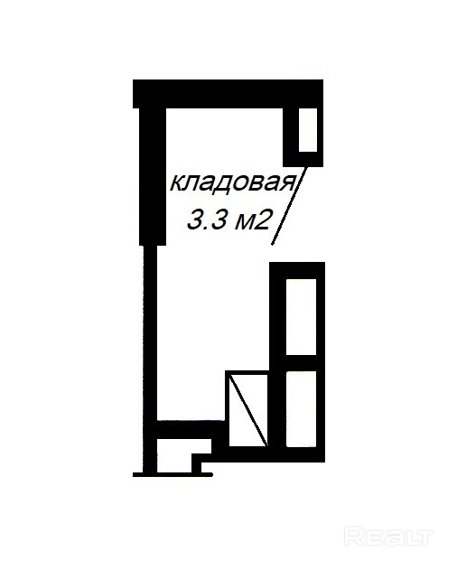 В собственности отдельный оборудованный стеллажами хозяйственный блок(кладовая) 3.3м2 напротив квартиры.