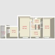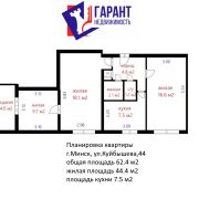 Площадь по СНБ 62,4 Общая площадь: 60,4 Жилая площадь: 44,4. Площадь кухни: 7,5.